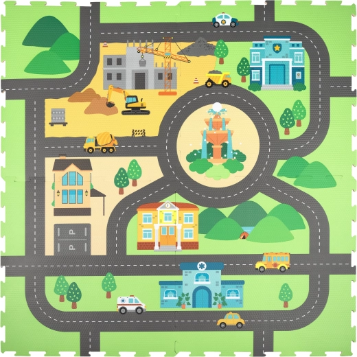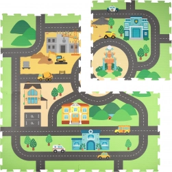 A HUMBI oktató habszivacs kirakó egyesíti a tanulást és a játékot. A nyomtatott utaknak és épületeknek köszönhetően a gyerekek könnyedén megalkothatják saját városukat, útvonalakat tervezhetnek és fejleszthetik képzeletüket. A felület puha, elnyeli az ütéseket és véd a padló hidegétől.