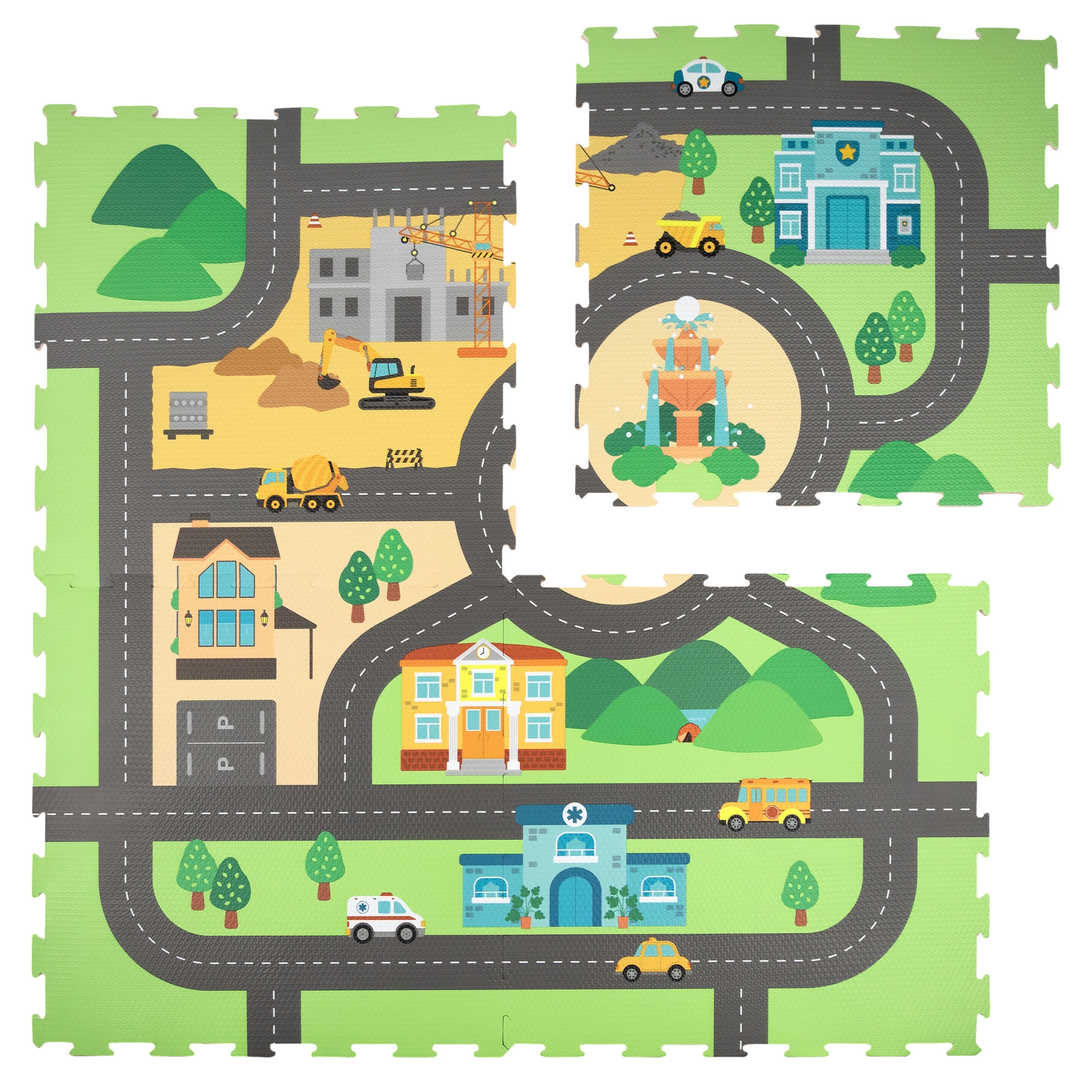 Fedezze fel a HUMBI vidám és biztonságos habszivacs szőnyegét városi utcák motívummal. A 4 nagy elem kb. 120 × 120 cm-es felületet alkot, és puha, szigetelő és csúszásgátló felületet kínál a játékhoz. A gyerekek saját kis városukat és útjaikat rakhatják össze, fejleszthetik kreativitásukat és finommotorikájukat. Tartós EVA habból készült, ftalát-, formamid-, BPA- és PVC-mentes.