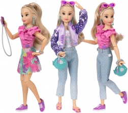 A csomagban két teljes szettet és rengeteg kiegészítőt találsz a végtelen kombinációkhoz. A csillogó lila dzsekivel, flitteres ujjakkal, a virágos szoknyával egészen a stílusos napszemüvegig és táskáig – minden a tengeri stílushoz hangolva.