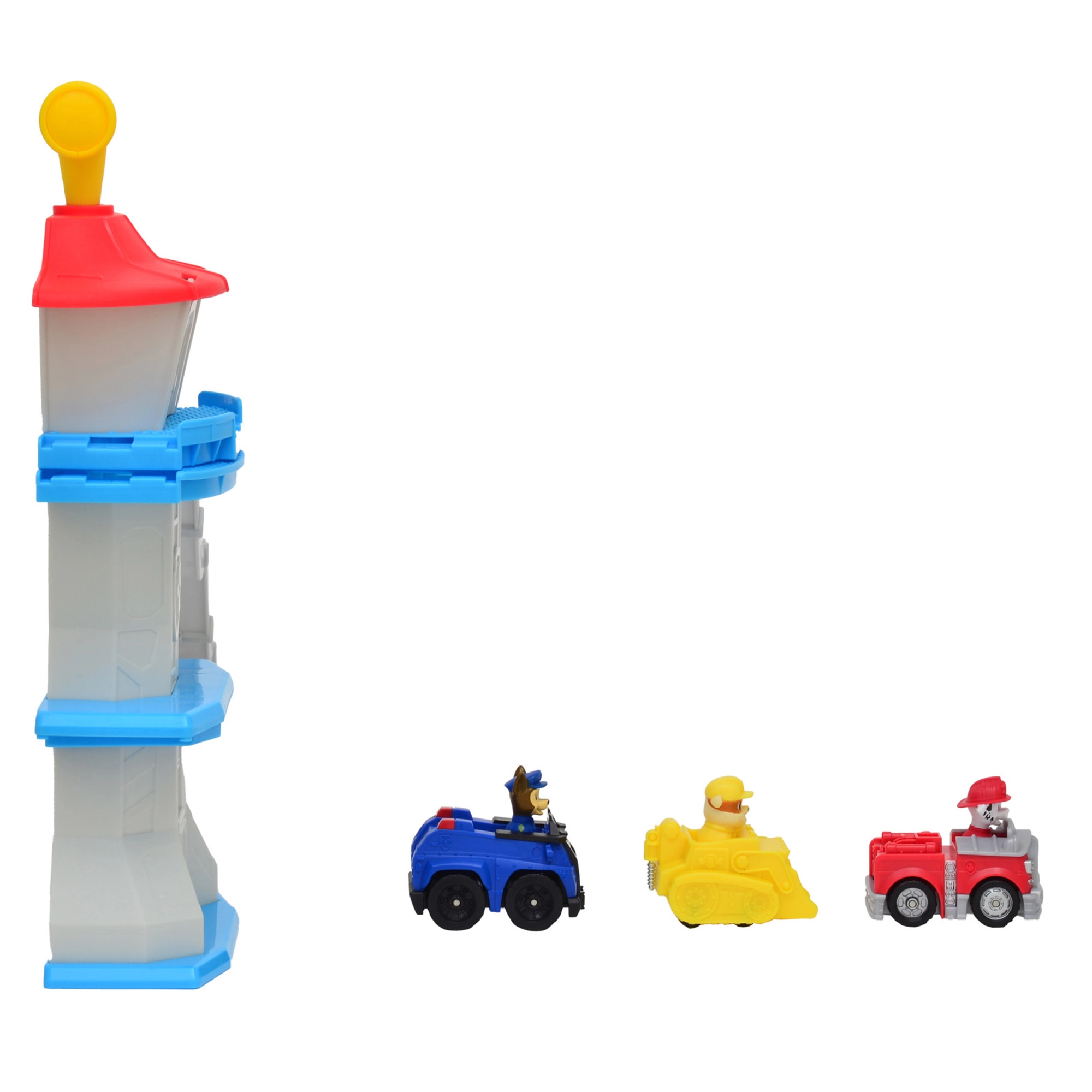 Éld át az Adventure Bay-i akciókat! A hosszú rámpával és színes platformokkal ellátott torony hűen idézi a népszerű PAW Patrol világát. A szett része 3 mini autó figurákkal – Chase rendőrautója, Marshall tűzoltóautója és Rubble buldózere – mind készen állnak a mentőmisszióra.