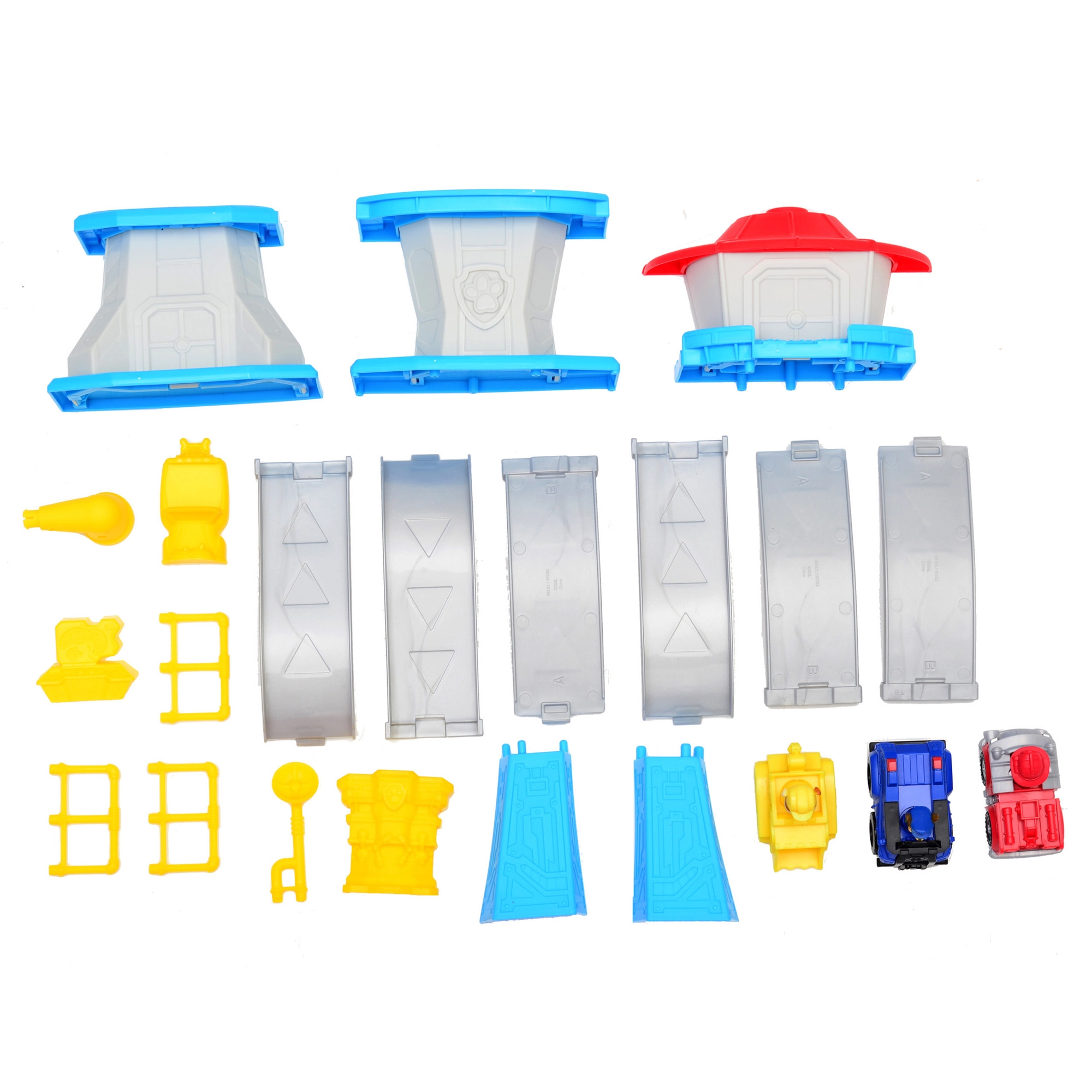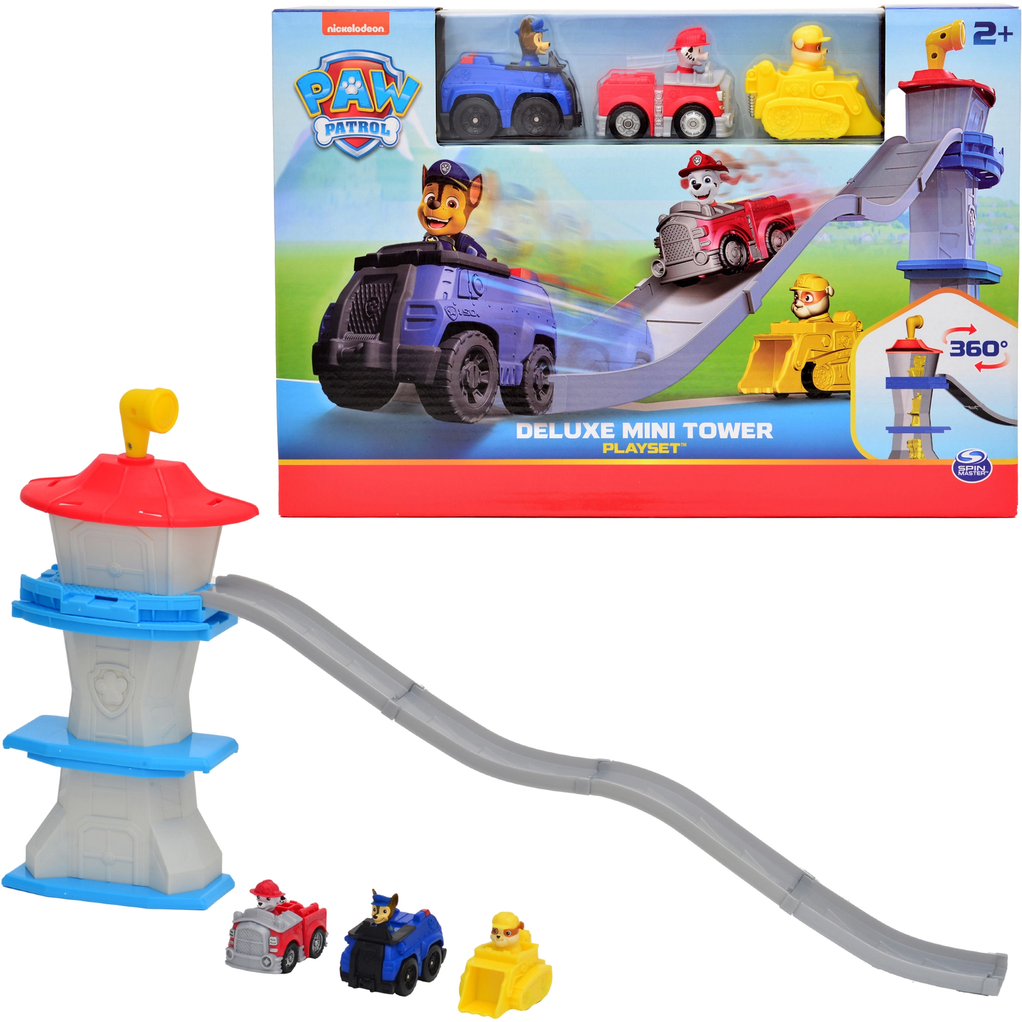 A népszerű PAW Patrol sorozat által inspirált izgalmas játékkészlet egy 3 az 1-ben tornyot pályával és 3 mini járművet közkedvelt kutyusokkal (Chase, Marshall, Rubble) tartalmaz. A gyerekek a járműveket kézzel mozgathatják, vagy leengedhetik a szürke rámpán az akciódús mentőmissziókhoz. A készlet fejleszti a kreatív játékot, a finommotorikát és a együttműködést.