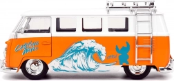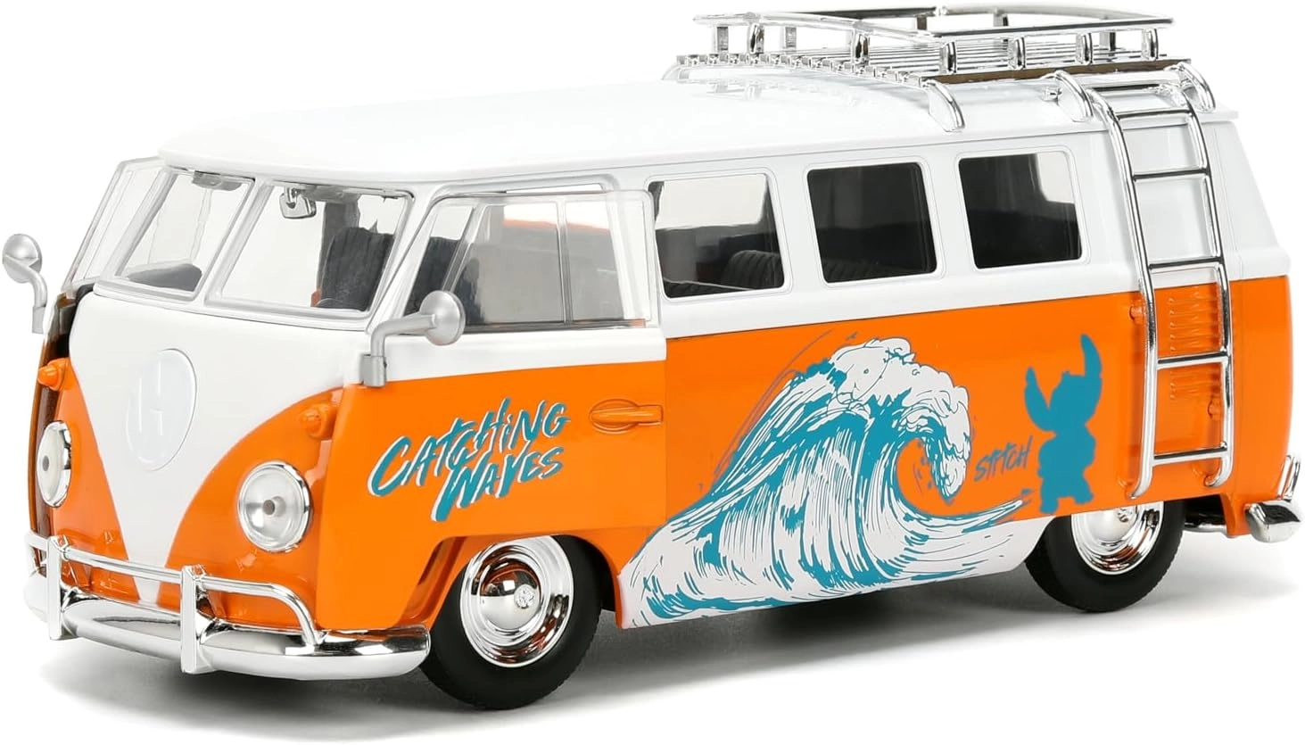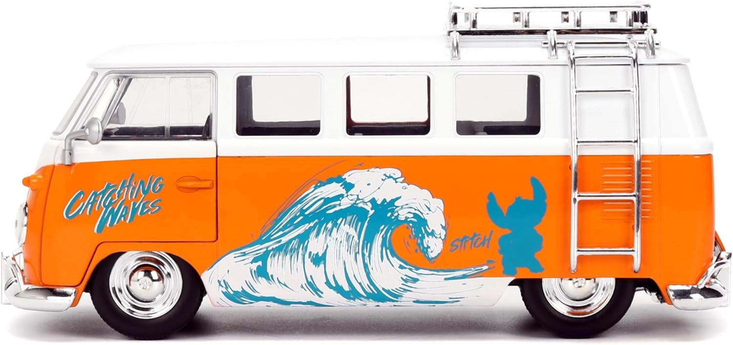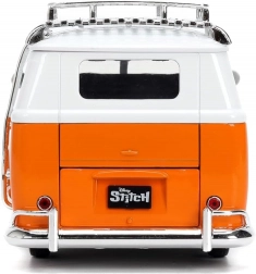 A 1:24 méretarányú modell nyitható részeket (ajtókat), részletgazdag belső teret, krómozott kiegészítőket és sima gördülést biztosító kerekeket kínál a felületen való könnyű mozgatáshoz. A csomag tartalmaz egy kb. 4 cm-es STITCH figurát is, amely tökéletesen illik a „Catching Waves” tematikus mintához.