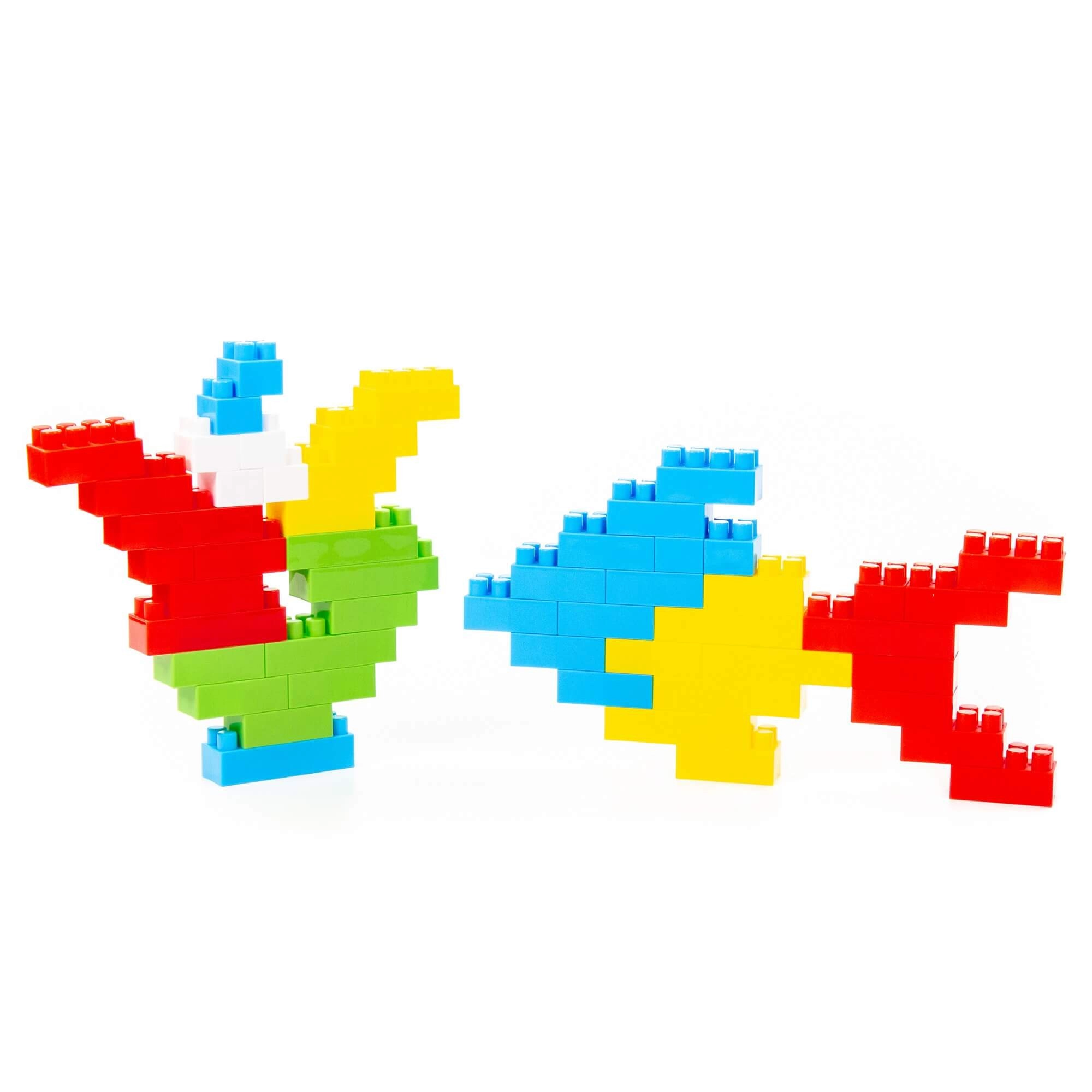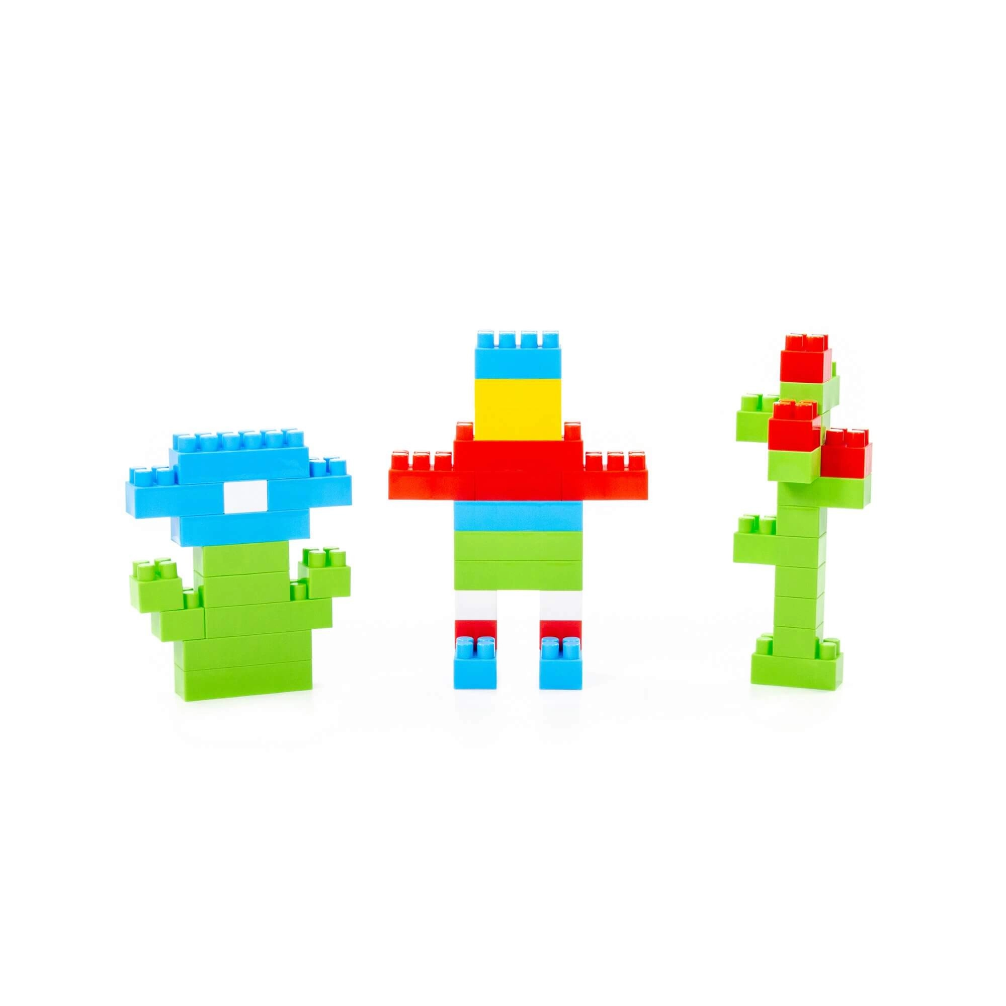 A nagy, színes kockák lehetővé teszik különféle modellek építését, miközben fejlesztik a fantáziát és a finommotorikát.