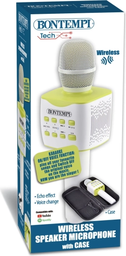 Élvezze a szabad előadást ezzel a vezeték nélküli mikrofonnal, ideális karaokéhoz, prezentációkhoz, fellépésekhez és baráti szórakozáshoz. Kínál egyszerű vezeték nélküli csatlakozást, gördülékeny hangerő- és visszhangszabályzást, hangváltó effektet, és praktikus védőtokkal érkezik. A beépített lítium akkumulátor kényelmes használatot biztosít otthon és kültéren is.