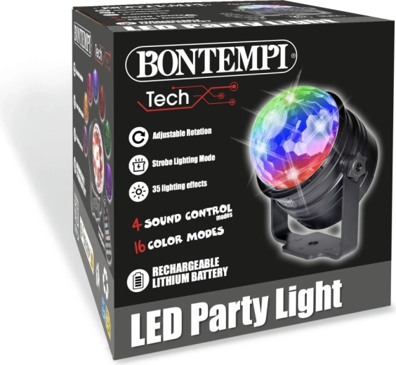 Ez a varázslatos diszkógömb bármilyen teret ragyogó táncparketté változtat. Prizmatikus szórásának köszönhetően dinamikus, színes mintákat és forgó effekteket hoz létre, amelyek energiát és hangulatot adnak az eseményeknek. A vezérlés egyszerű – távirányítóval gyorsan válthatsz módot, színeket és sebességet.