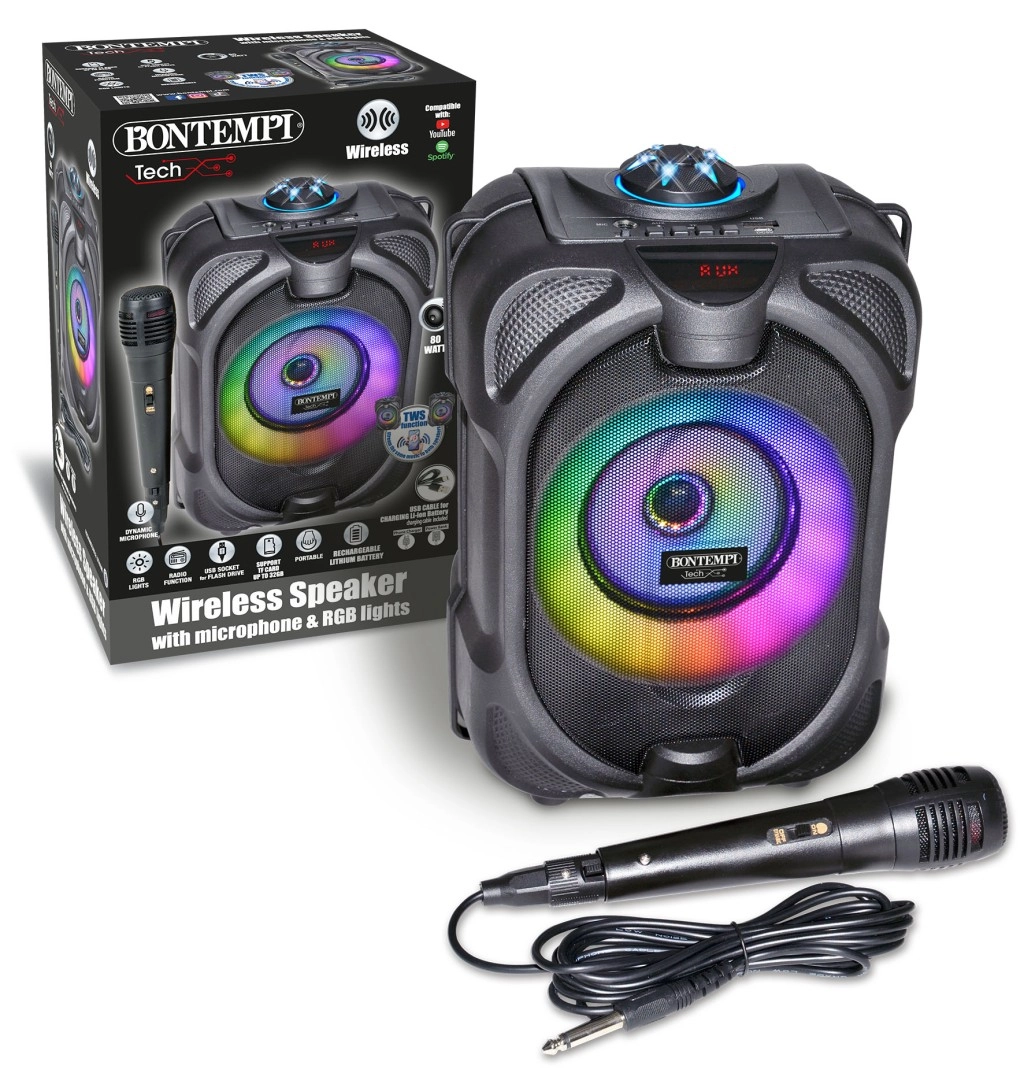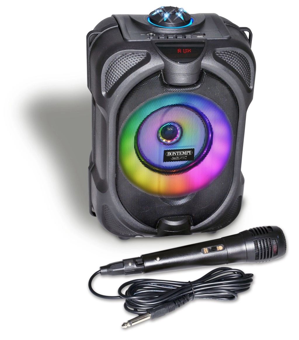 Ez a multifunkciós vezeték nélküli hangszóró élménnyé varázsol minden bulit. A dinamikus mikrofonnak köszönhetően ideális karaokehoz, műsorvezetéshez és beszédhez. A színes LED-effektek fokozzák a hangulatot, míg a beépített kijelző áttekinthetően mutatja az üzemmódot és a lejátszási információkat.