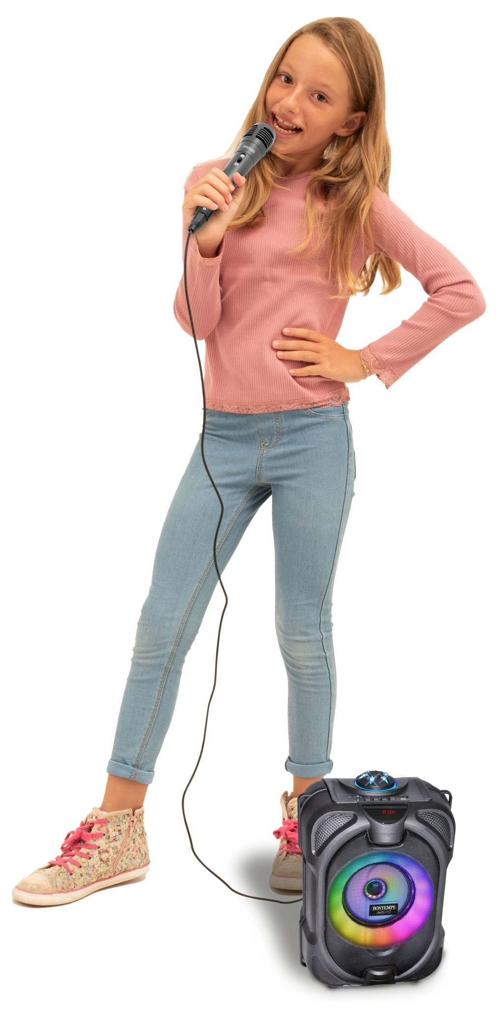 Élvezze a szórakozást bárhol ezzel a vezeték nélküli karaoke hangszóróval, dinamikus mikrofonnal, színes fényhatásokkal és beépített kijelzővel. Egyszerű csatlakozás Bluetoothon keresztül, minőségi hangzás, valamint beltéri és kültéri használat – tökéletes választás családi ünnepekre, karaokehoz és otthoni szórakozáshoz. A csomag részét képezi egy USB-C töltőkábel is.