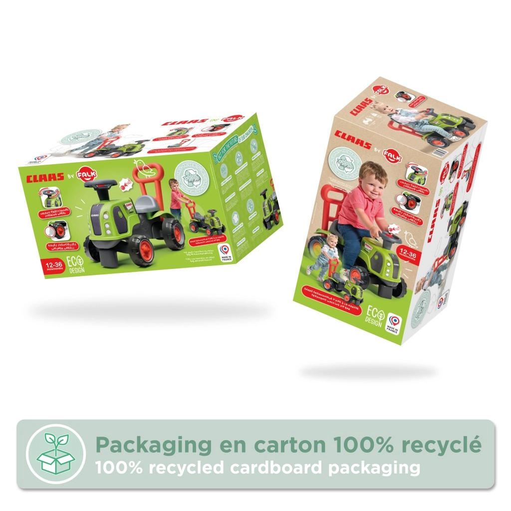 A CLAAS lábbal hajtós gyerek traktor remek választás a 12 hónapos kortól induló kis sofőröknek. Csendes kerekekkel a benti és kinti játékhoz, irányító kormánnyal a könnyű kezelésért, dudával a még nagyobb mókáért és széles, stabil kerekekkel a biztonságos haladásért. Franciaországban készült minőségi, újrahasznosított műanyagokból, 25 kg teherbírással.