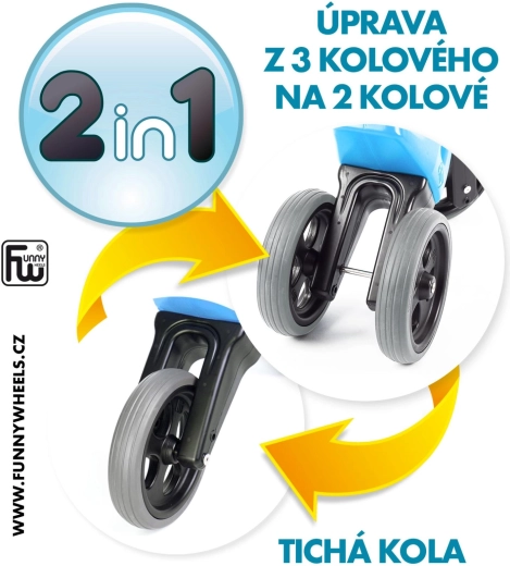 A FUNNY WHEELS Rider Sport 2v1 remek választás az első gurulásokhoz. Kezdetben három keréken, stabilan halad, később könnyen átáll kétkerekű kivitelre az egyensúly gyakorlásához. A kétféle nyeregmagasságnak köszönhetően a futóbicikli tovább használható, és támogatja a természetes mozgásfejlődést és a koordinációt.