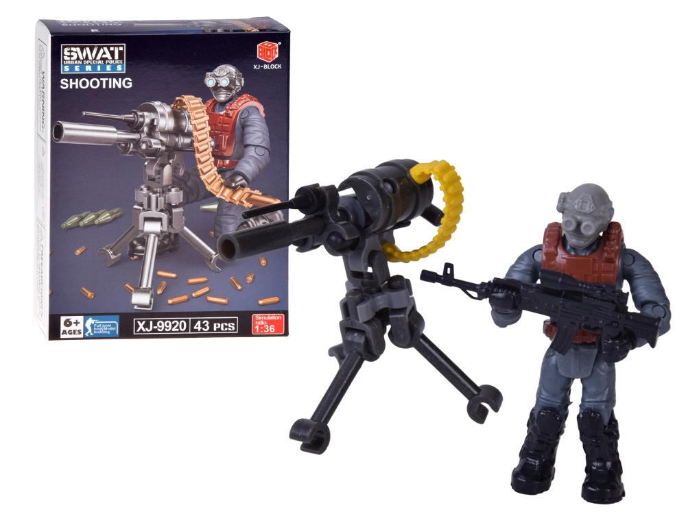Ez a mini építőkészlet minden kocka- és akciójelenet-rajongónak örömet szerez. Az egyes elemekből részletgazdag SWAT rendőrt állíthatsz össze mozgatható fejjel, törzzsel és végtagokkal, így könnyedén beállíthatod dinamikus pózokba. Kis mérete ellenére valósághű részletekkel tűnik ki, és önállóan megáll.