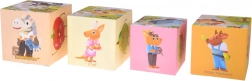 Könnyű, mégis masszív kockák minőségi kartonból, amelyek egymásba helyezve egyszerűen tárolhatók, így nem foglalnak sok helyet. Alkalmas önálló játékra és közös felfedezésre a szülőkkel – a számolástól és válogatástól kezdve egészen az állatkákról és szakmáikról szóló történetmesélésig.