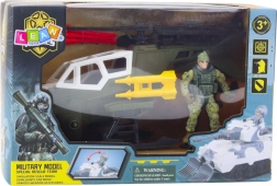 A szett egy strapabíró, klasszikus terepmintás, zöld–fekete árnyalatokkal és sárga részletekkel díszített katonai helikoptert kombinál egy mozgatható katona figurával. A gyerekek beültethetik a figurát a pilótafülkébe, és izgalmas jeleneteket alkothatnak – a gyakorlórepülésektől a mentőakciókig.