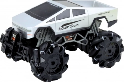 Stílusos ezüst RC pickup 1:16 méretarányban, 2,4 GHz-es vezérléssel, teljes 11 csatornás funkcióval, LED világítással és lenyűgöző füsthatással (spray). A nagy terepgumiknak köszönhetően ideális beltéri és kültéri használatra, és órákon át tartó, akciódús szórakozást nyújt a gyerekeknek.