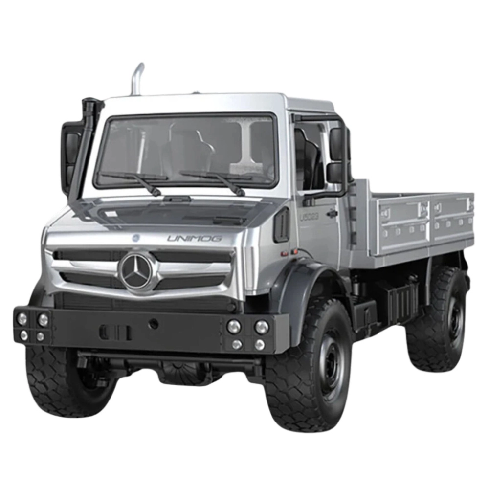 Az MERCEDES-BENZ UNIMOG 4x4 RC terepjáró részletgazdag kidolgozású modell fém elemekkel, nyitható ajtókkal és motorháztetővel. Az arányos gáz és kormányzás lehetővé teszi a finom elindulást, fékezést és a precíz kanyarodást. A stabil 2,4 GHz-es adó megbízható, zavarmentes vezérlést nyújt akár 25 m hatótávval.