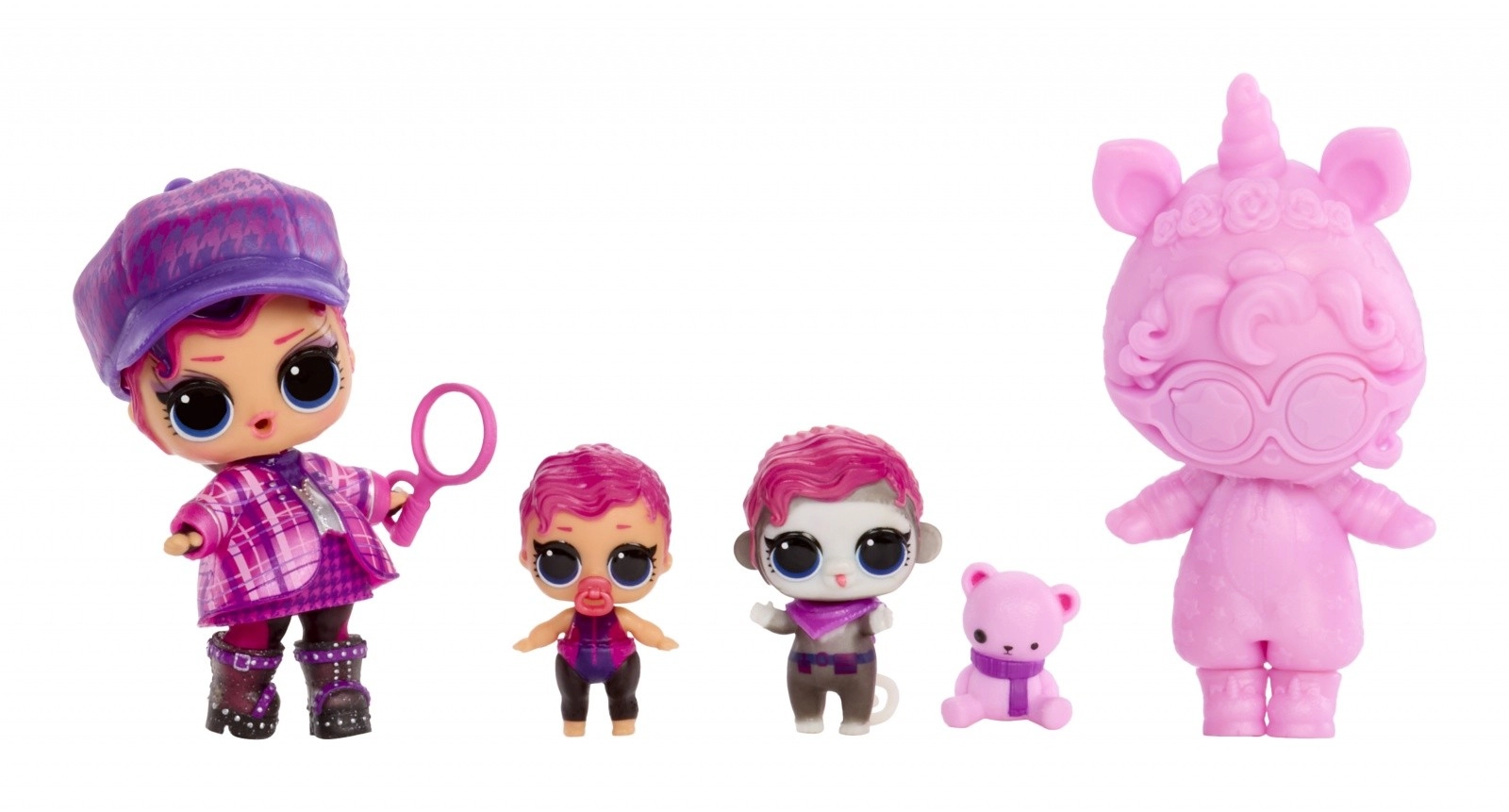 A fő baba rózsaszín hajjal és ízületes mozgással, két mini figura és egy aranyos kisállat lehetővé teszi az egyedi történetek és pózok megalkotását.