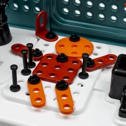 A 103 darabos készlet lehetővé teszi a csavarozást, befogást, vágást és „fúrást” ötletes projektek keretében. A műhely kompakt, könnyű, és könnyen elhelyezhető a gyerekszobában. Remek választás a motorika, a képzelőerő és az első munkaszokások fejlesztésére.