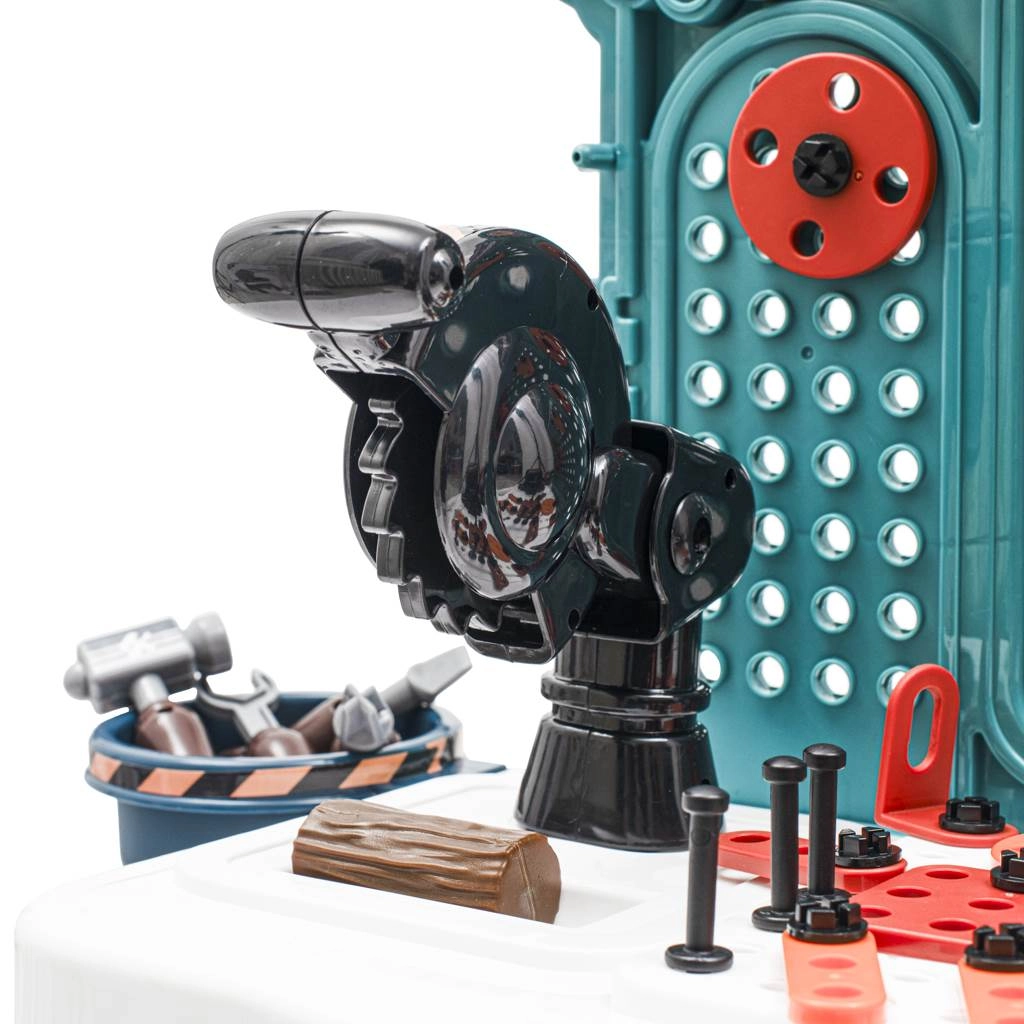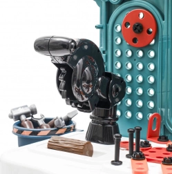 A BABY MIX gyerek műhely teljes barkács hátteret nyújt a kis rajongóknak. A gazdag felszereltségnek köszönhetően – csavaroktól és anyáktól kezdve a fűrészen, fogón át egészen a funkcionális satuig – a gyerekek gyakorolhatják a koordinációt, a logikát és a türelmet. A tartós kialakítás stabil lábakkal és praktikus pegboard panellel támogatja a biztonságos és kreatív játékot.