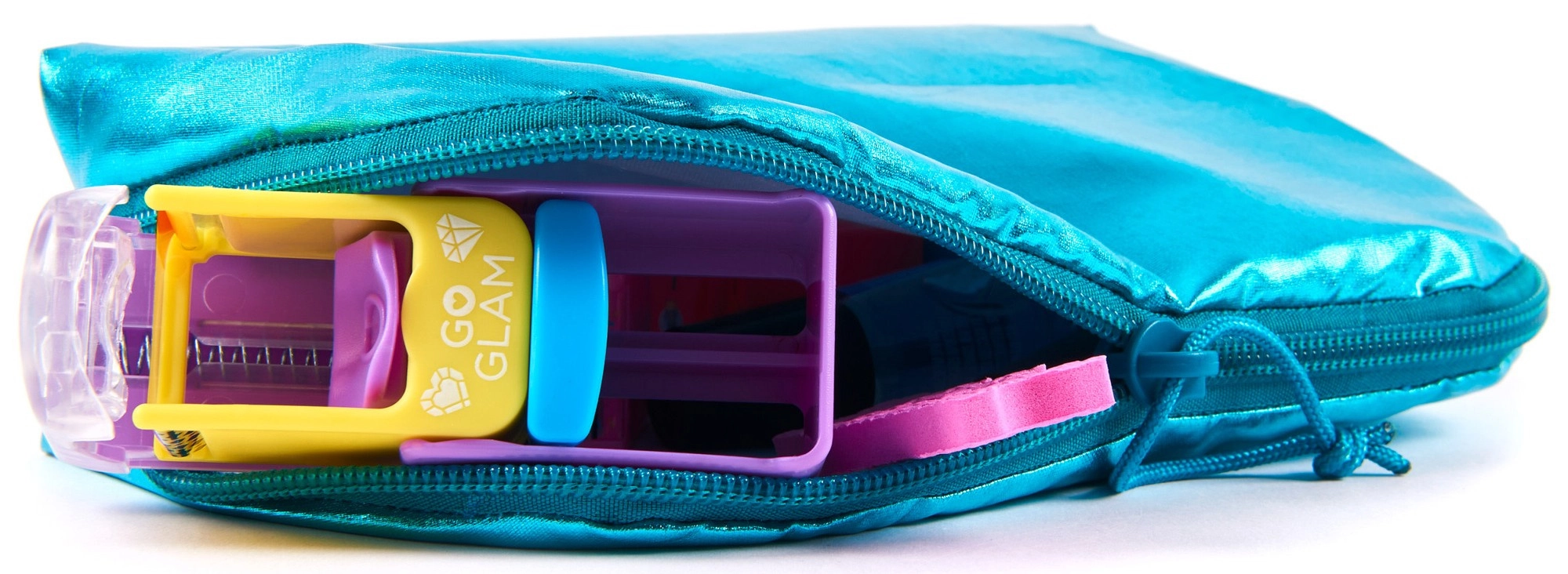 A csillogó cipzáras neszesszer egyben tartja a lakkokat, kazettákat és a bélyegzőt. Tökéletes a szett biztonságos szállításához és tárolásához.