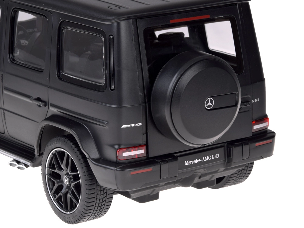 Stílusos, licencelt MERCEDES-AMG G 63 RC modell 1:14 méretarányban, valósághű részletekkel, nyitható ajtókkal és csomagtérrel, működő első és hátsó lámpákkal, valamint kényelmes 2,4 GHz-es vezérléssel. A gumis, mintázott abroncsoknak köszönhetően kiváló a tapadása, ideális szórakozáshoz és ajándéknak autórajongóknak is.