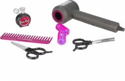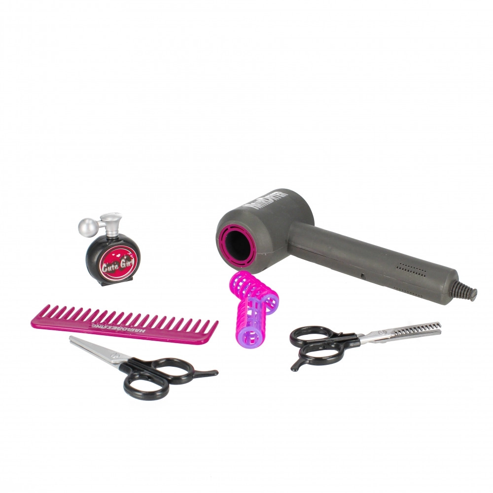 Szórakoztató fodrászkészlet kis stylistoknak mindent tartalmaz, amire a gyerekeknek szükségük van a szalonos szerepjátékhoz. Tartalmaz hajszárítót, fésűt, hajcsavarókat, ollót és permetezőt. Ideális 3 éves kortól.