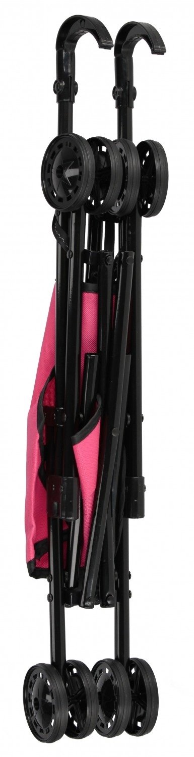 Ez a fém babakocsi ötvözi a masszív felépítést és az alacsony tömeget, így könnyen tolható, mégis jól tartja az irányt. A rózsaszín textil ülés övvel biztonságosan a helyén tartja a babát, akár a lakásban, akár a szabadban sétáltok.