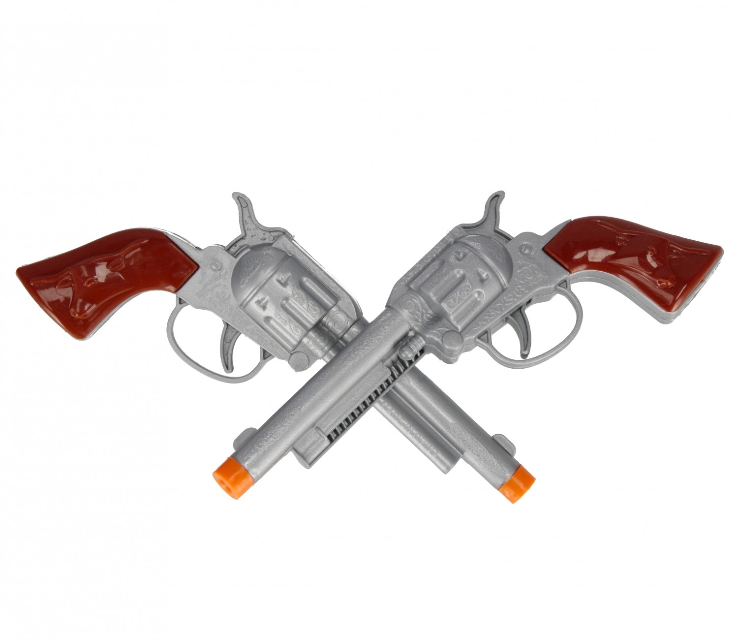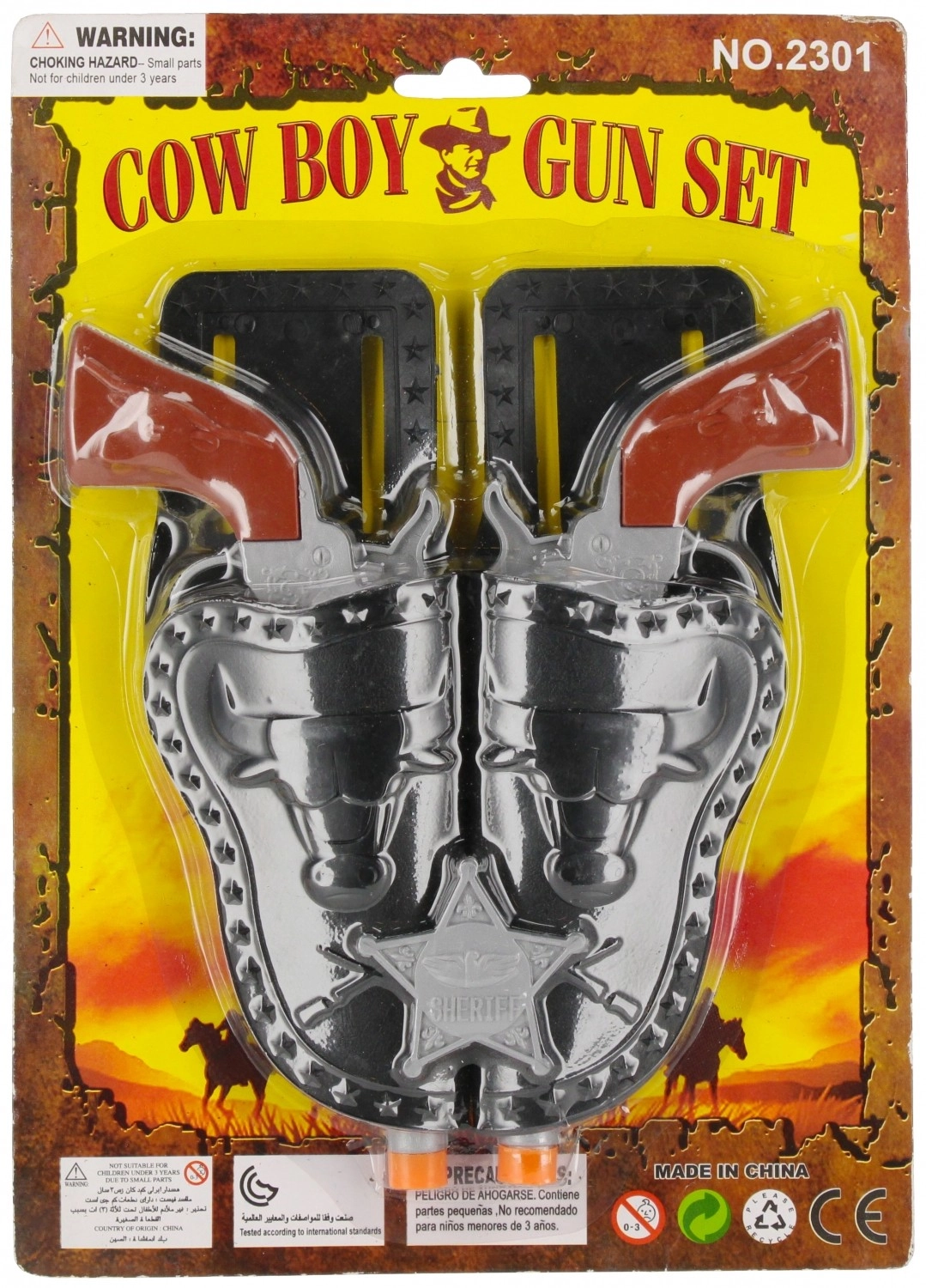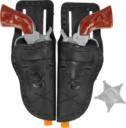 A készlet mindent tartalmaz az autentikus élményhez – két pisztolyt, két övtokot és egy fényes seriffcsillagot. A könnyű anyagoknak köszönhetően a kiegészítők egyszerűen kezelhetők és kényelmesek a gyerekek viseléséhez.