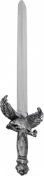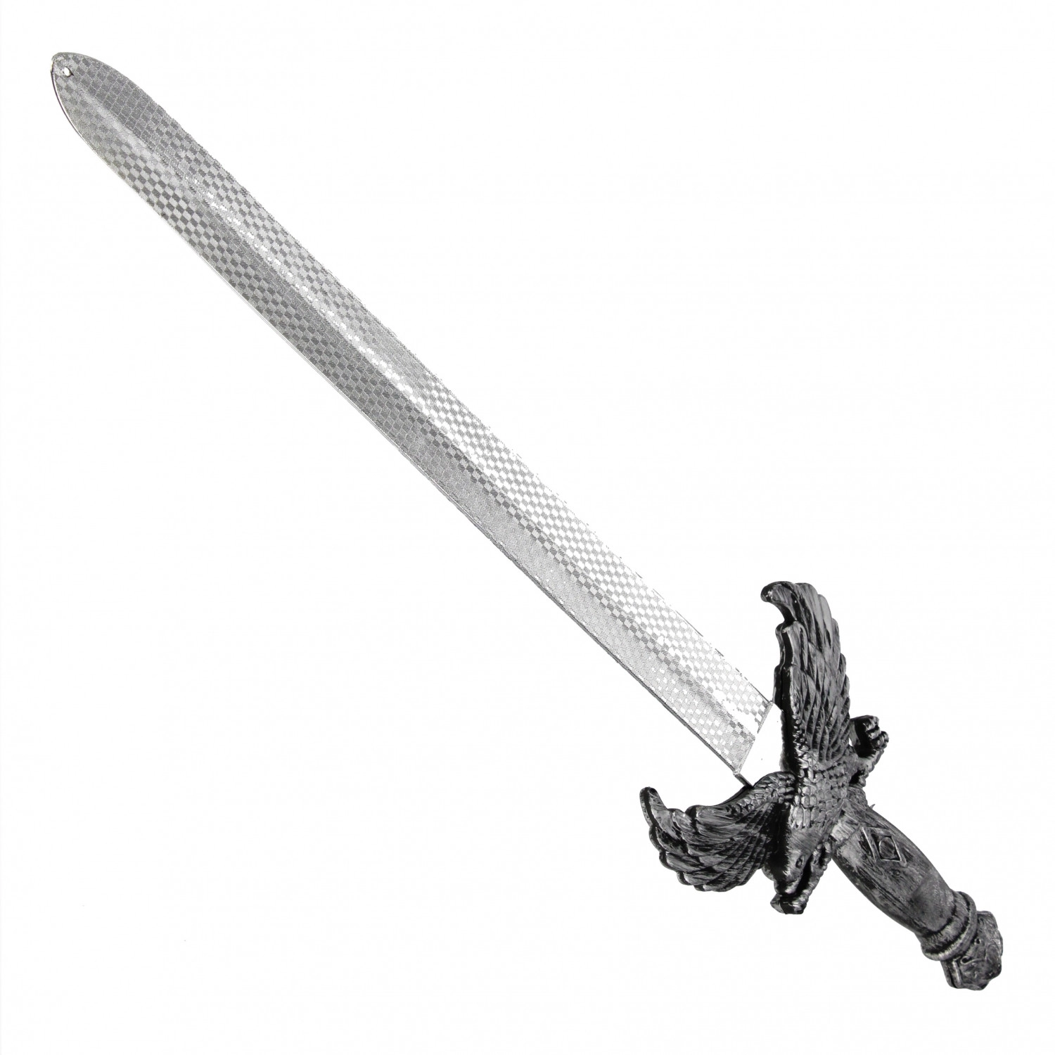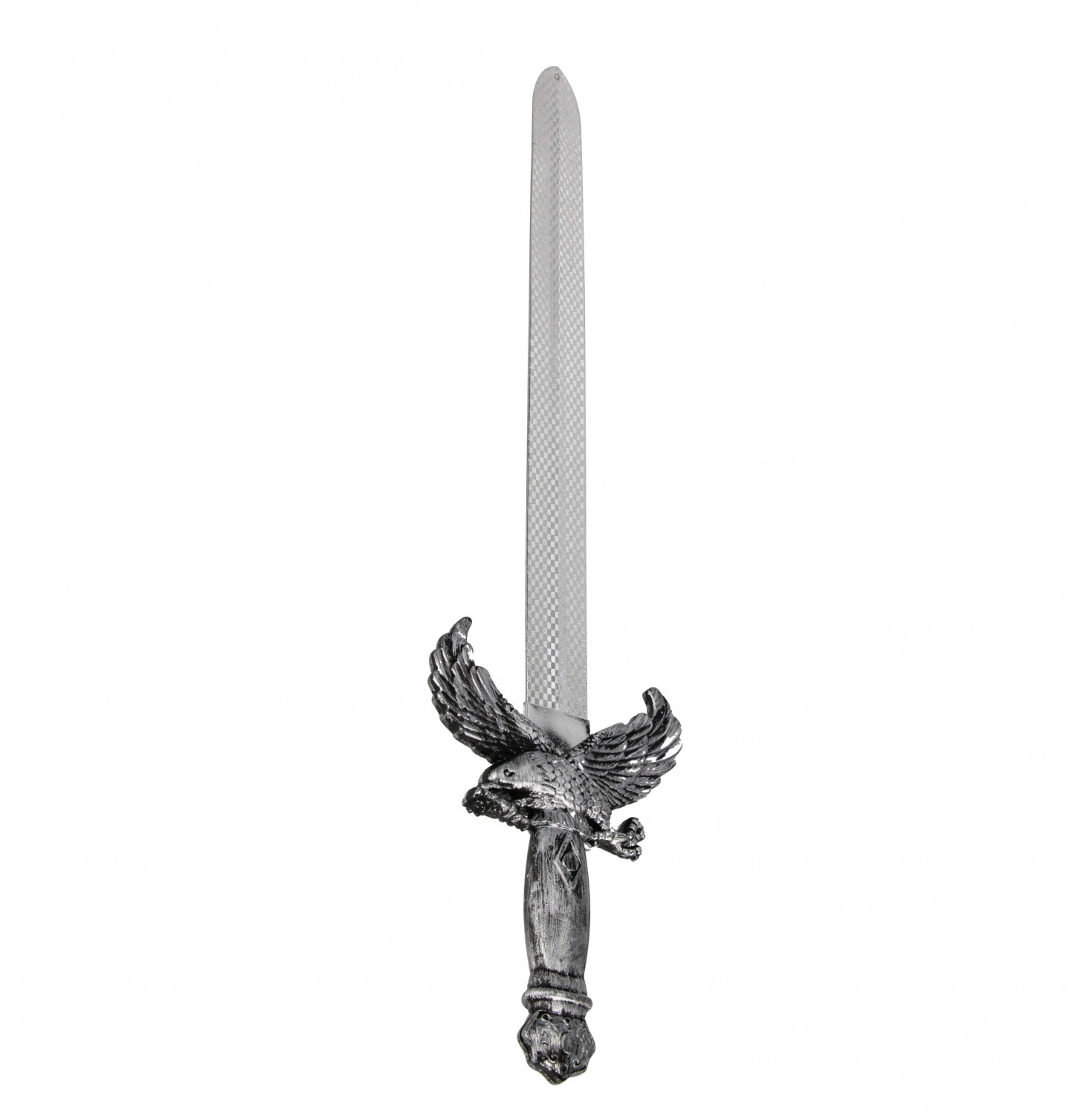 Texturált penge és díszített keresztvas sas motívummal, amely vonzó megjelenést ad a kardnak jelmezekhez és tematikus játékokhoz.