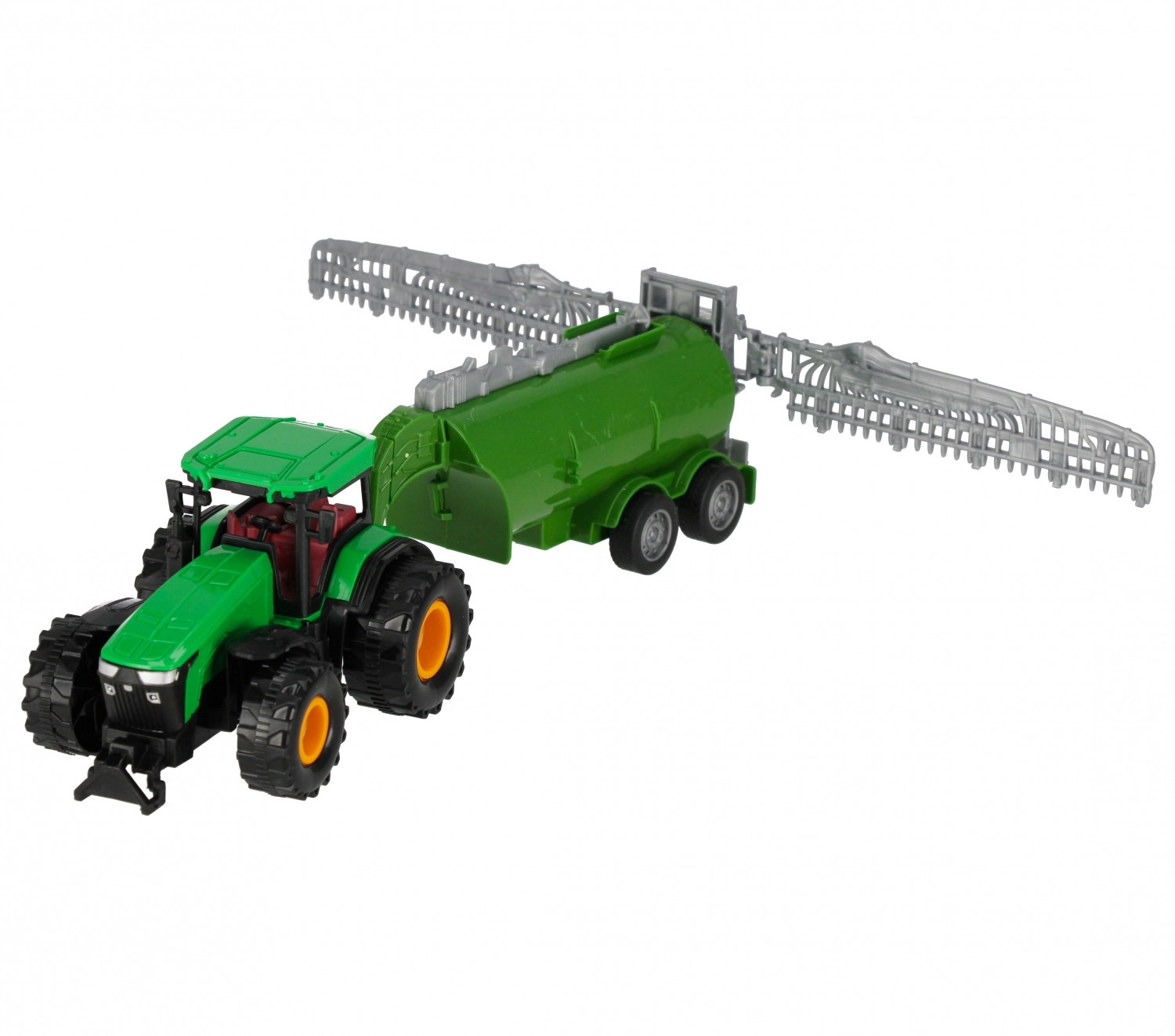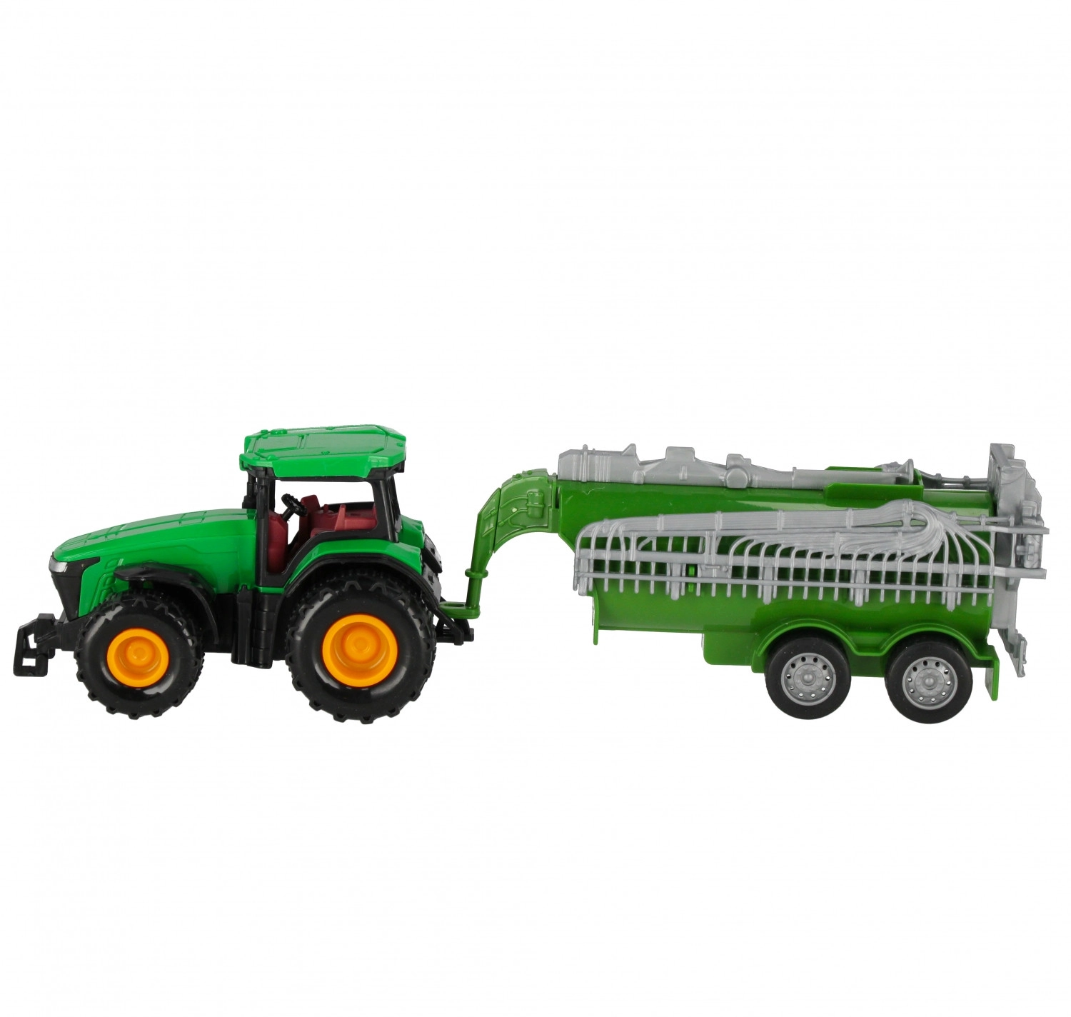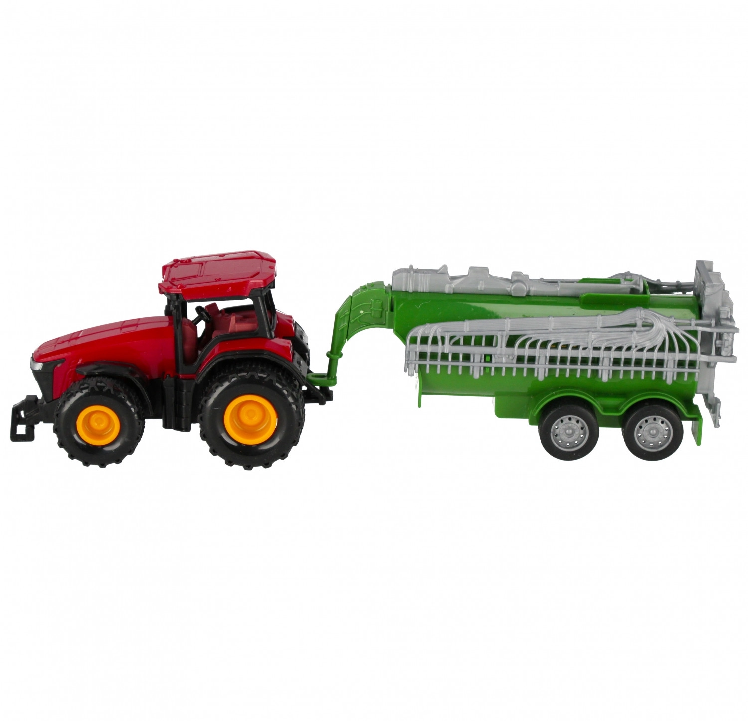 Ez a részletgazdag mezőgazdasági gép tartálykocsis pótkocsival autentikus gazdasági élményt nyújt a gyerekeknek. A pull‑back funkciónak köszönhetően csak hátra kell húzni és elengedni – a traktor előre indul, támogatva a dinamikus játékot. A mozgatható részek, mint a pótkocsi nyitható vagy billenthető elemei és a valósághű fülkerészletek felfedezésre hívnak, fejlesztve a finommotorikát és a képzeletet.