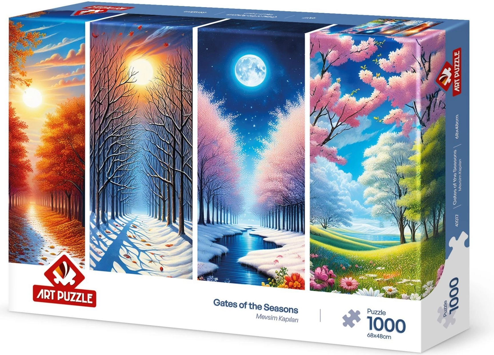 Élvezze a megnyugtató kirakást egy motívummal, amely végigkísér tavasszal, nyáron, ősszel és télen. Az 1000 darabos puzzle remek választás felnőtteknek és nagyobb gyerekeknek, akik több estére szóló szórakozást keresnek, miközben fejleszteni szeretnék a koncentrációt, a logikát és a részletek észlelését.
