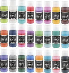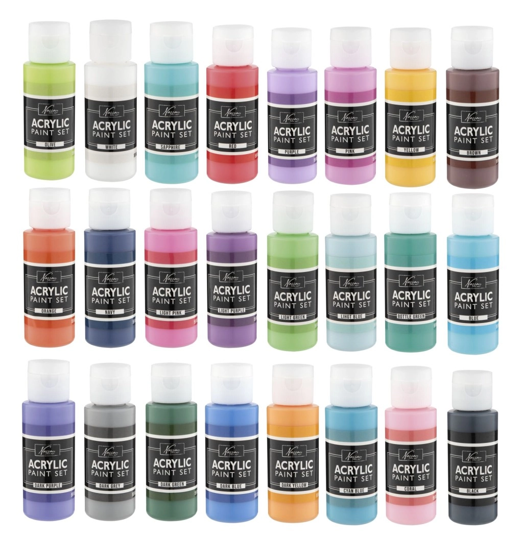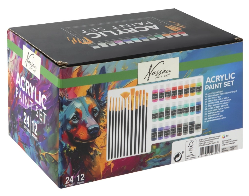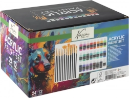 Komplett festőkészlet kezdőknek és haladó művészeknek 24 akrilfestékkel élénk árnyalatokban és 12 minőségi ecsettel. A festékek magas fedőképességűek, könnyen keverhetők és gyorsan száradnak – ideálisak vászonra, papírra, fára és kartonra.