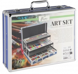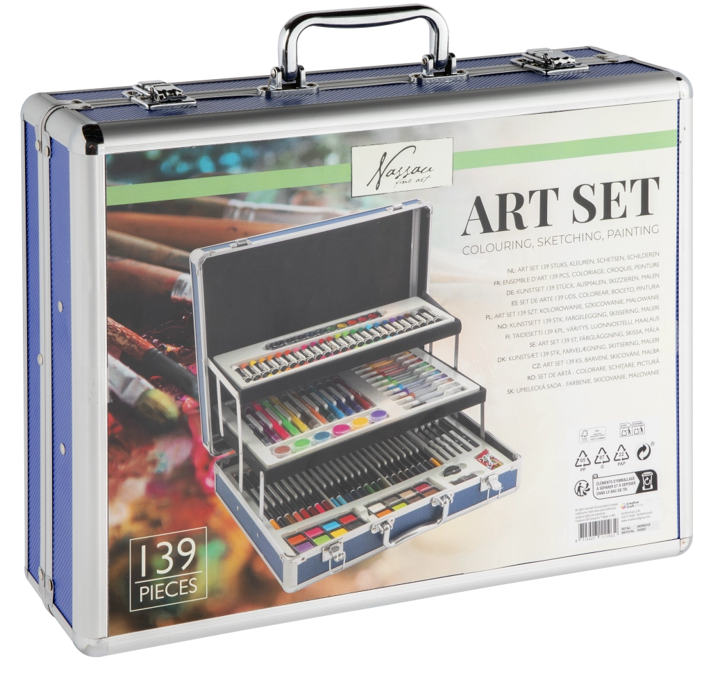 Teljes kreatív készlet kicsiknek és nagyoknak praktikus fém kofferben. Akár 140 darab képzőművészeti eszközt találsz benne – színes ceruzák, filctollak, zsírkréták, vízfestékek, ecsetek, hegyező, radír és egyéb kiegészítők. A kihajtható rekeszeknek köszönhetően minden áttekinthetően rendszerezett, készen áll az alkotásra otthon és útközben is.