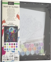 A csomag tartalma: 1× előrenyomott mintájú vászon, akrilfesték-készlet, 1× ecset, nyomtatott útmutató.