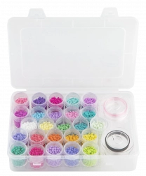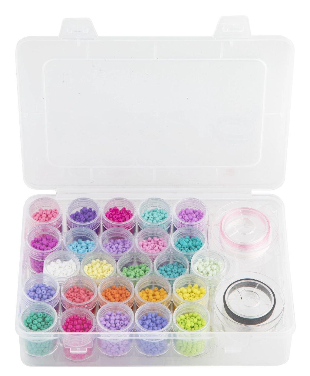 Ez a nagy üveg gyöngykészlet gazdag 25 színből álló választékot kínál kreatív projektjeihez. Az átlátszó, rekeszes rendezőnek köszönhetően minden árnyalat áttekinthetően kéznél van, így gyorsan kombinálhatja a színeket az egyedi dizájnokhoz.