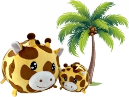 Aranyos szett két plüss zsiráfból – anya és bébi – rendkívül puha és selymes plüssből. A nagyobb zsiráf ölelni való utazópárnaként szolgál, a kisebb pedig a legkisebbeknek ideális első kedvencnek. Biztonságos kialakítás kemény részek nélkül, 30 °C-on mosható és születéstől ajánlott.