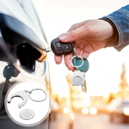 Praktikus kulcstartó levehető bevásárlókocsi-zsetonnal, amely időt és idegeket spórol. Legyen a zseton mindig kéznél, többé nem kell aprót keresni vagy váltani. Kompakt, könnyű és strapabíró segítőtárs a mindennapi vásárlásokhoz.