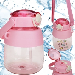 Praktikus és vidám, 1 literes gyerekpalack szívószállal és vállpánttal – ideális iskolába, óvodába, kiránduláshoz és sporthoz. Biztonságos, kifolyásmentes zárással, lehajtható tetővel, integrált szívószállal és kényelmes füllel az egyszerű hordozáshoz. Szagmentes, tartós műanyagja egész nap frissen és ízletesen tartja az italokat.