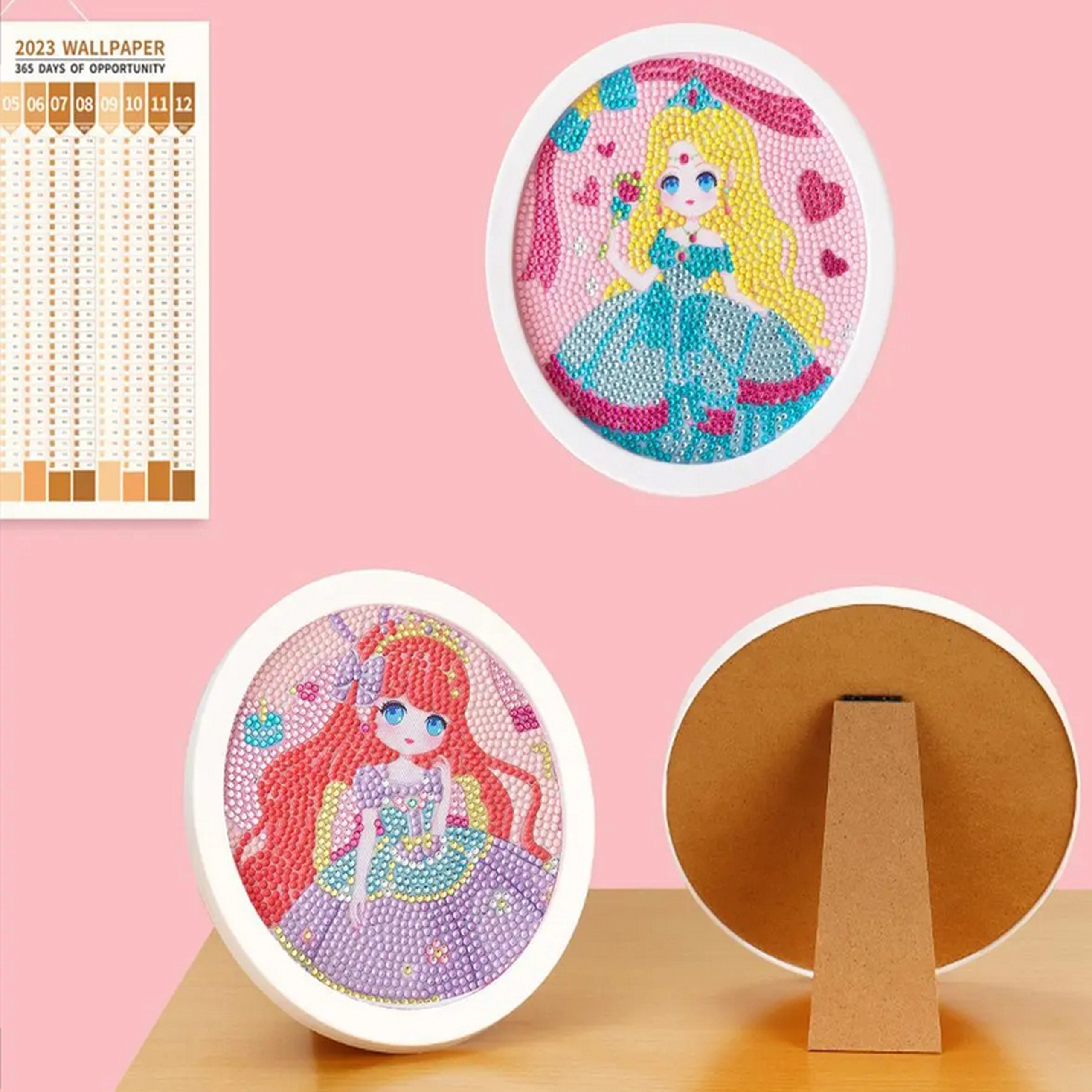 A kerek keret integrált kitámasztóval lehetővé teszi, hogy a kész képet azonnal az asztalra vagy polcra állítsa további előkészületek nélkül.