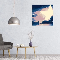A megnyugtató, égi téma lágy árnyalatokban szépen kiegészíti a modern enteriőrt, és figyelemfelkeltő fali dekorációvá válik.