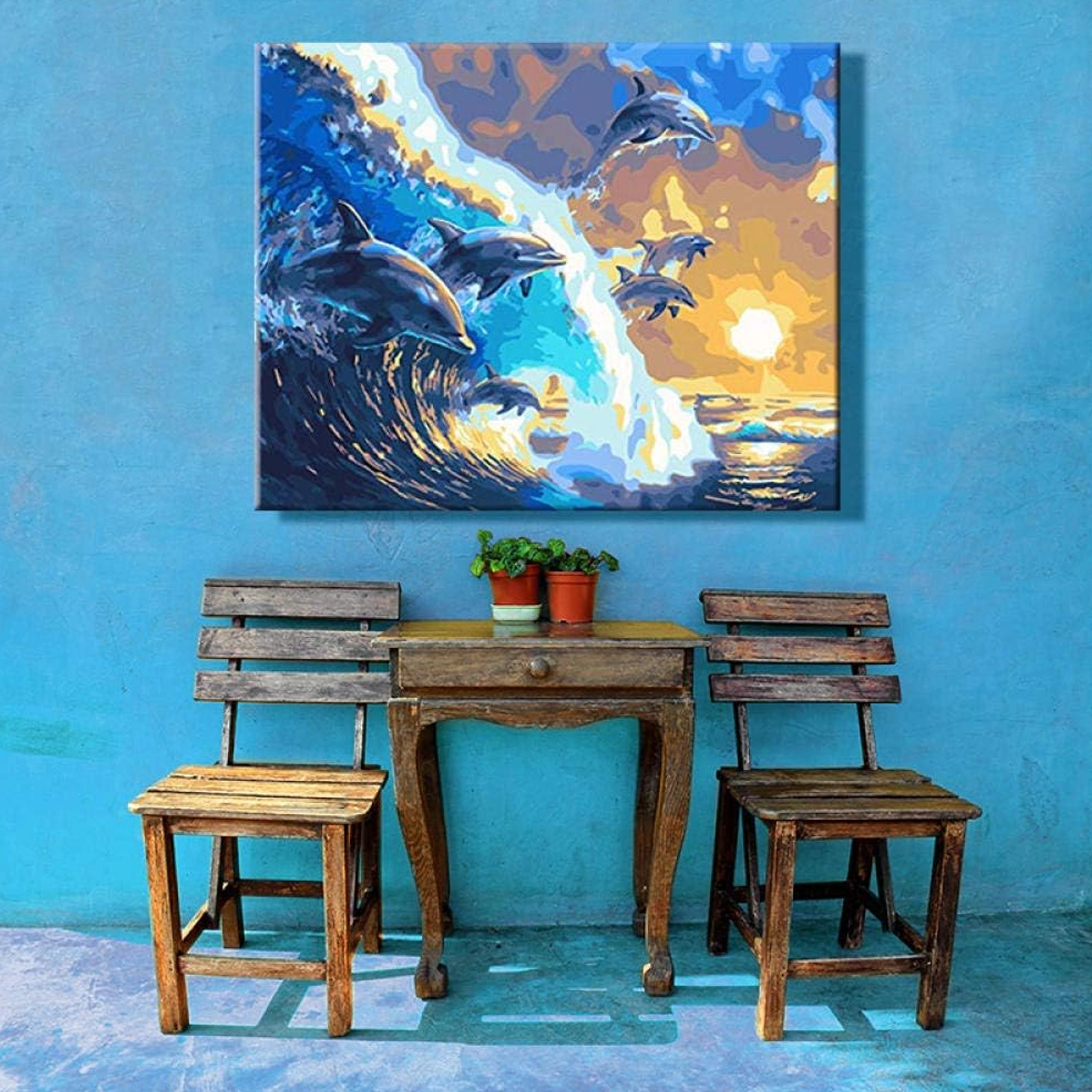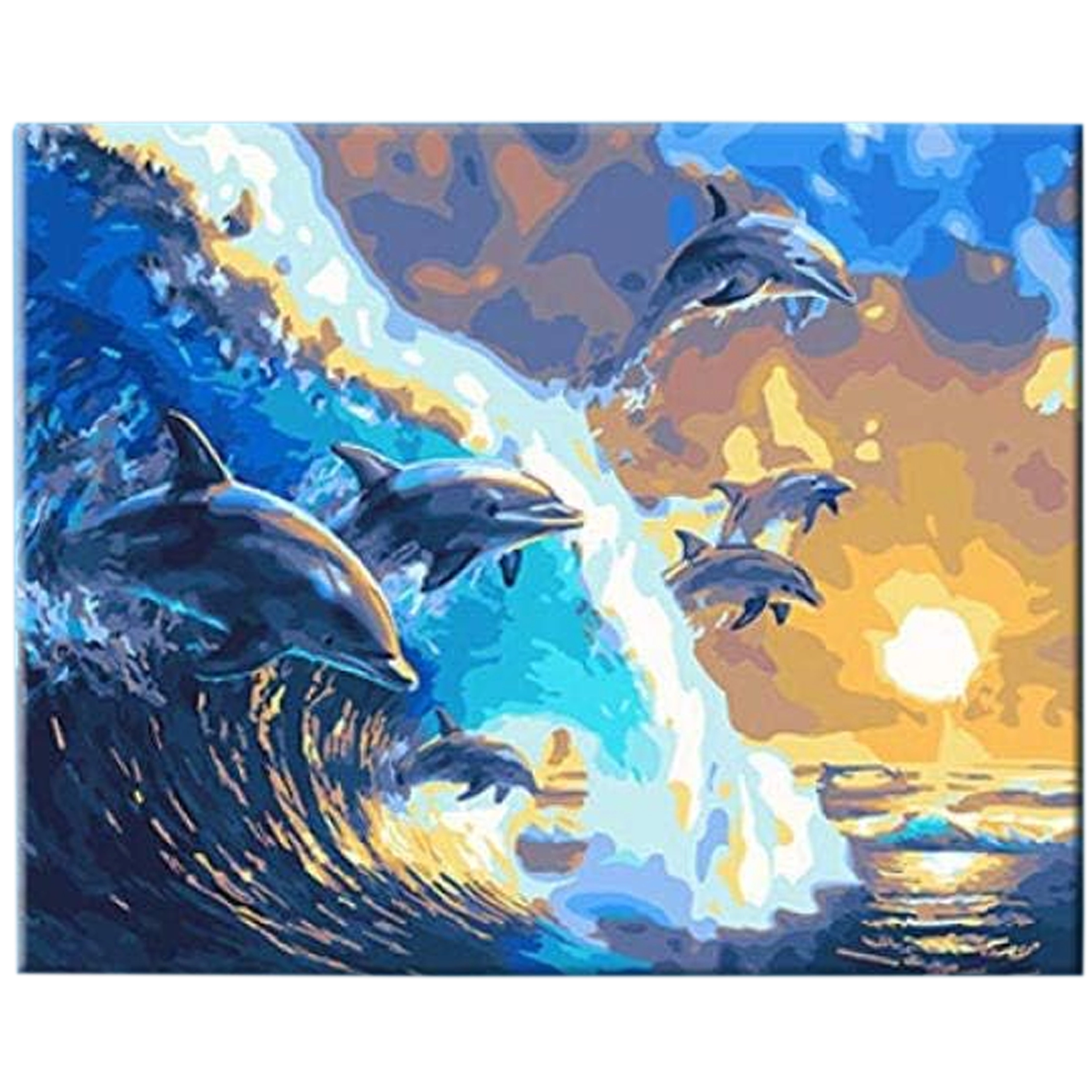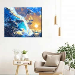 Fedezze fel a kikapcsolódást és a kreativitást a teljes számozott kifestő készlettel 40 × 50 cm méretben, feszített vászonnal kereten. Csak párosítsa a számokat a színekkel, és lépésről lépésre megalkot egy hatásos delfinmotívumot naplementében – ideális kezdőknek és haladóknak, remek ajándék, a kész kép pedig egyszerűen felfüggeszthető a falra.