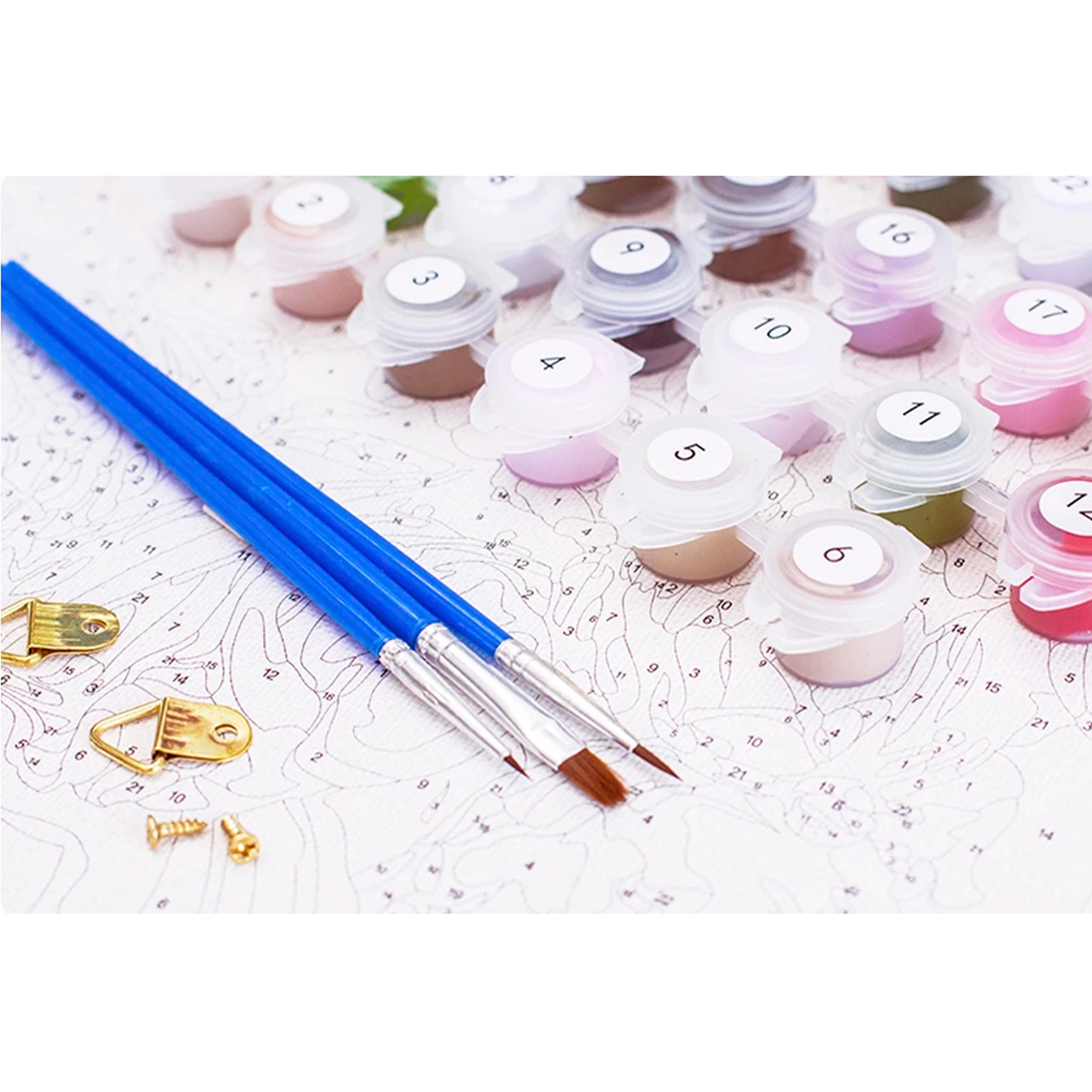 Számozott vászon, akrilfestékek és ecsetek – kezdjen festeni már a kicsomagolás után. Minden szám pontosan megfelel egy színnek a tökéletes végeredményért.