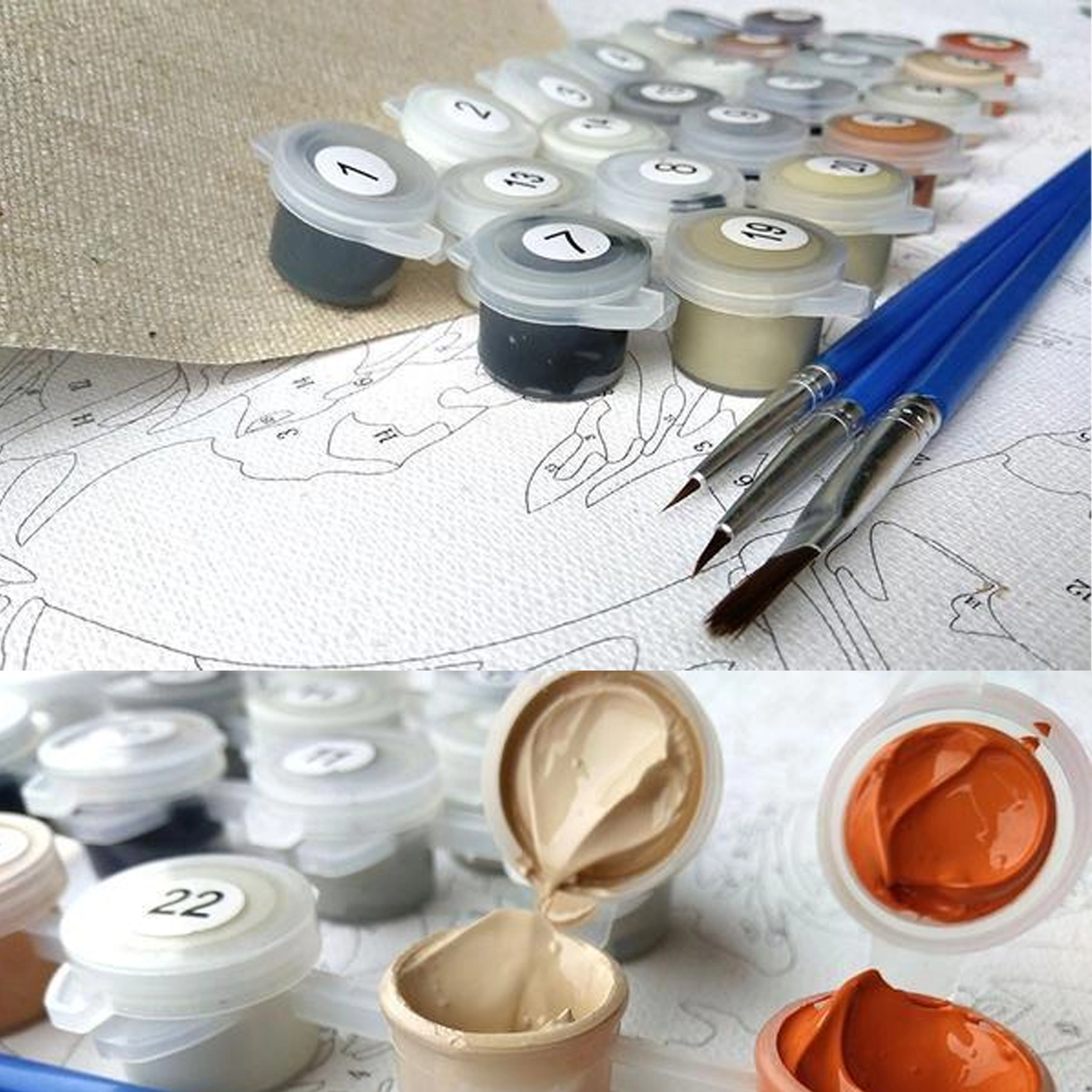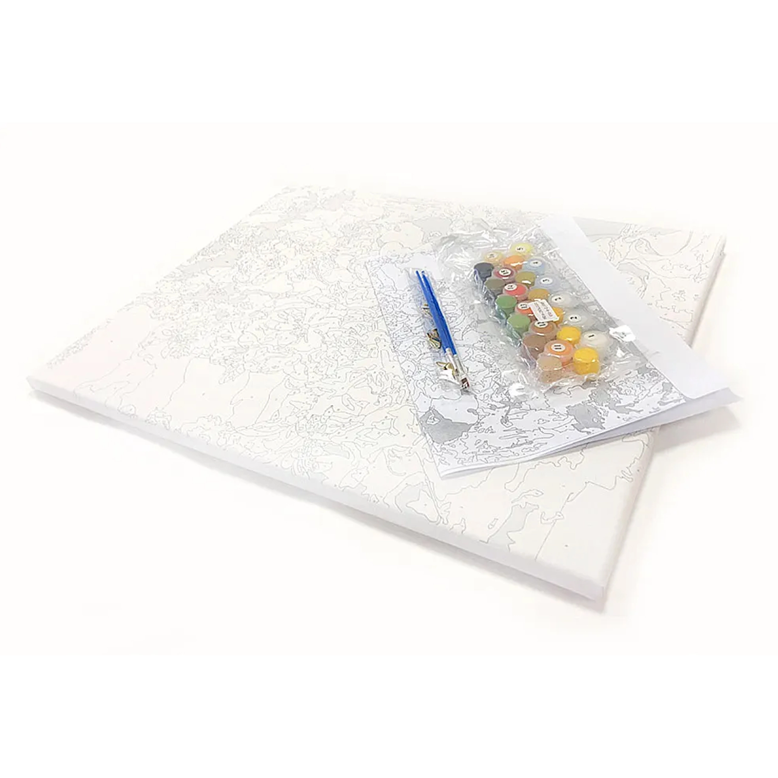 • Teljesen festésre kész – keretre feszített vászon, festékek és ecsetek