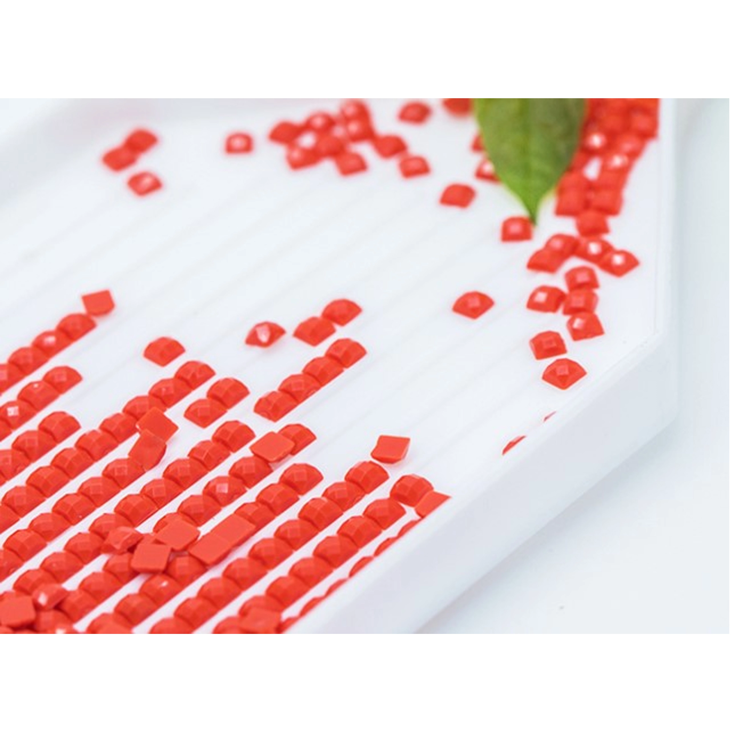 Minden szükséges elemet tartalmaz a csomag: öntapadós vászon 21 × 25 cm, gyantakövek sok színben, applikátor viasszal a pontos felvételhez és bordázott tálka a „drillek” egyszerű sorba rendezéséhez. A készlet kiváló kezdőknek, és fejleszti a finommotorikát, a koncentrációt és a türelmet.