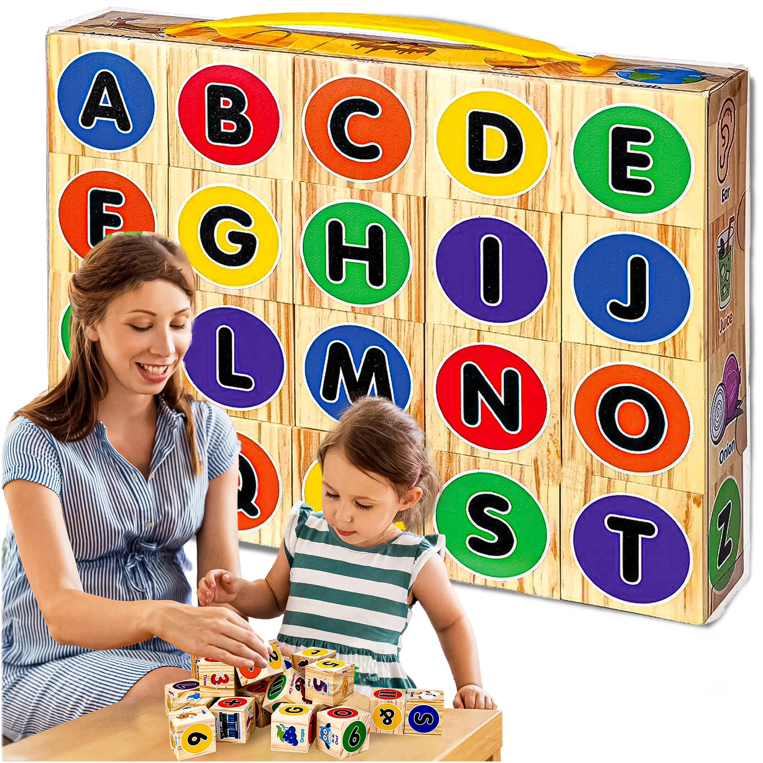 A 20 darabos szett fejleszti a fantáziát és az építőkészséget – a tornyoktól a kisebb építményekig. A kockákkal való játék egyúttal fejleszti a koncentrációt és a finommotorikát. A biztonságos kivitel éles szélek nélkül és a nem mérgező festékek nyugodt mindennapi játékot biztosítanak.