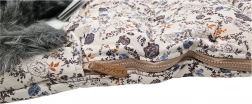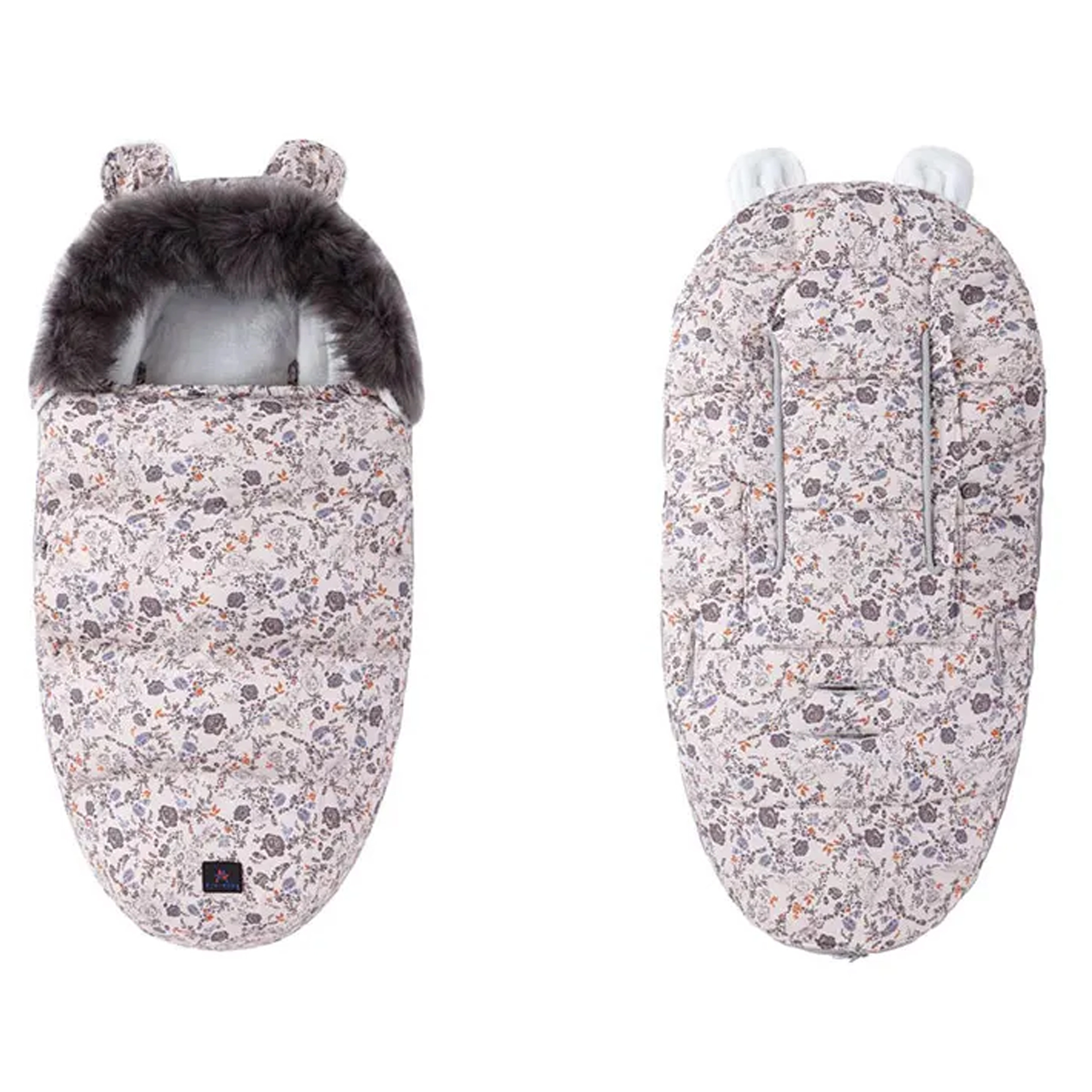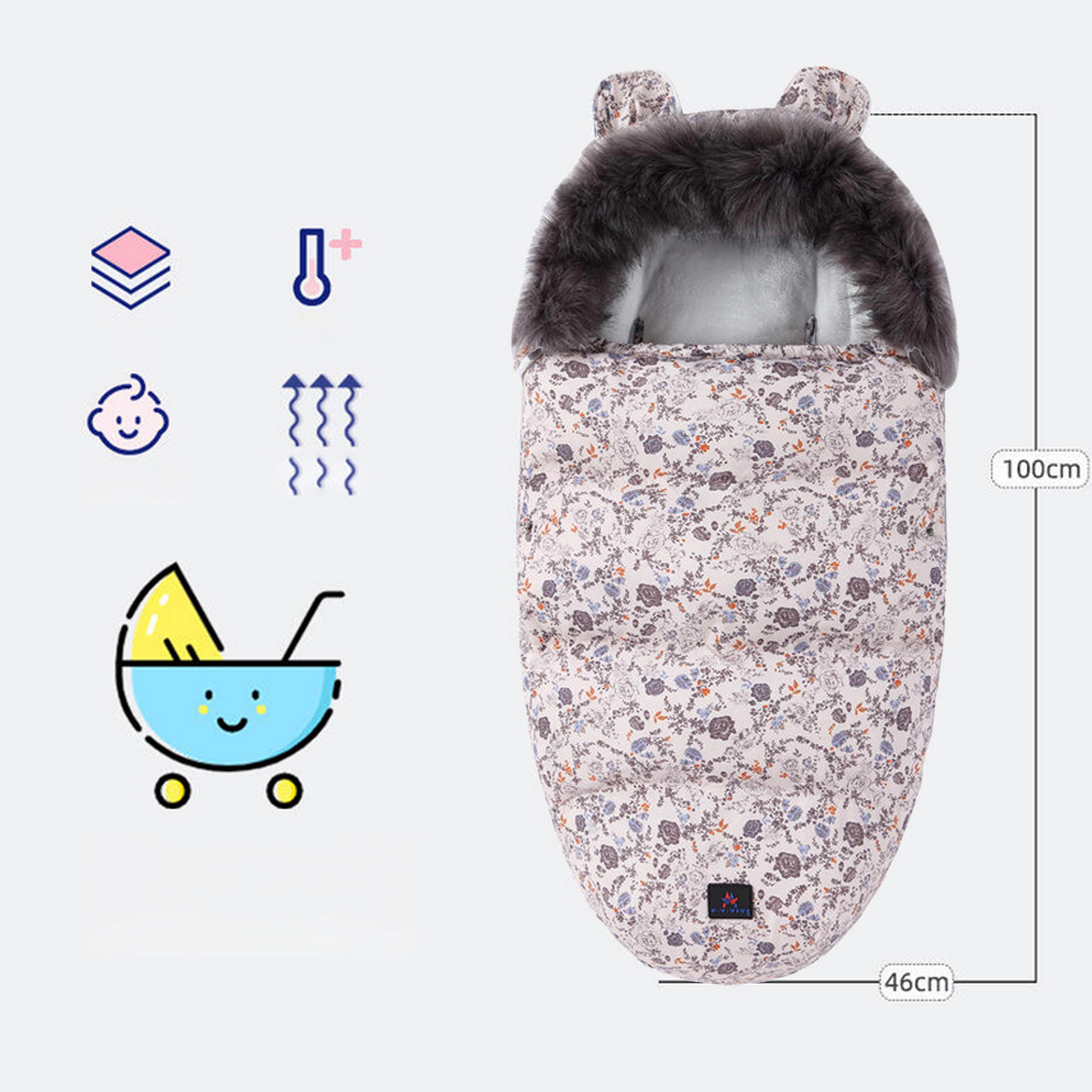 A stílusos és funkcionális FYYIYI bundazsák rózsaszín virágmintával ideális a hideg napokra. Tartós külső szövete véd a hótól és a széltől, míg a puha, meleg párnázás és a belső mikropolár minden sétán kényelmet nyújt. A műszőrmés szegélyű kapucni védi a baba fejét a huzattól.
