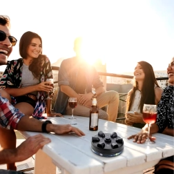 A játék könnyen hordozható, gyorsan beüzemelhető, és az egyszerű kezelhetőségnek köszönhetően bárki számára érthető. Az alján lévő tapadókorongok stabilan az asztalon tartják a készüléket, így csak a szórakozásra kell figyelned. Remek icebreaker, és támogatja a csoportos interakciót.