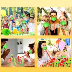 Az elasztikus pántokkal ellátott maszkok kényelmesen illenek gyerekekre és felnőttekre egyaránt. A rugalmas „nyelv” szórakoztató célzást és célok elkapását teszi lehetővé – biztonságosan és sok nevetéssel.