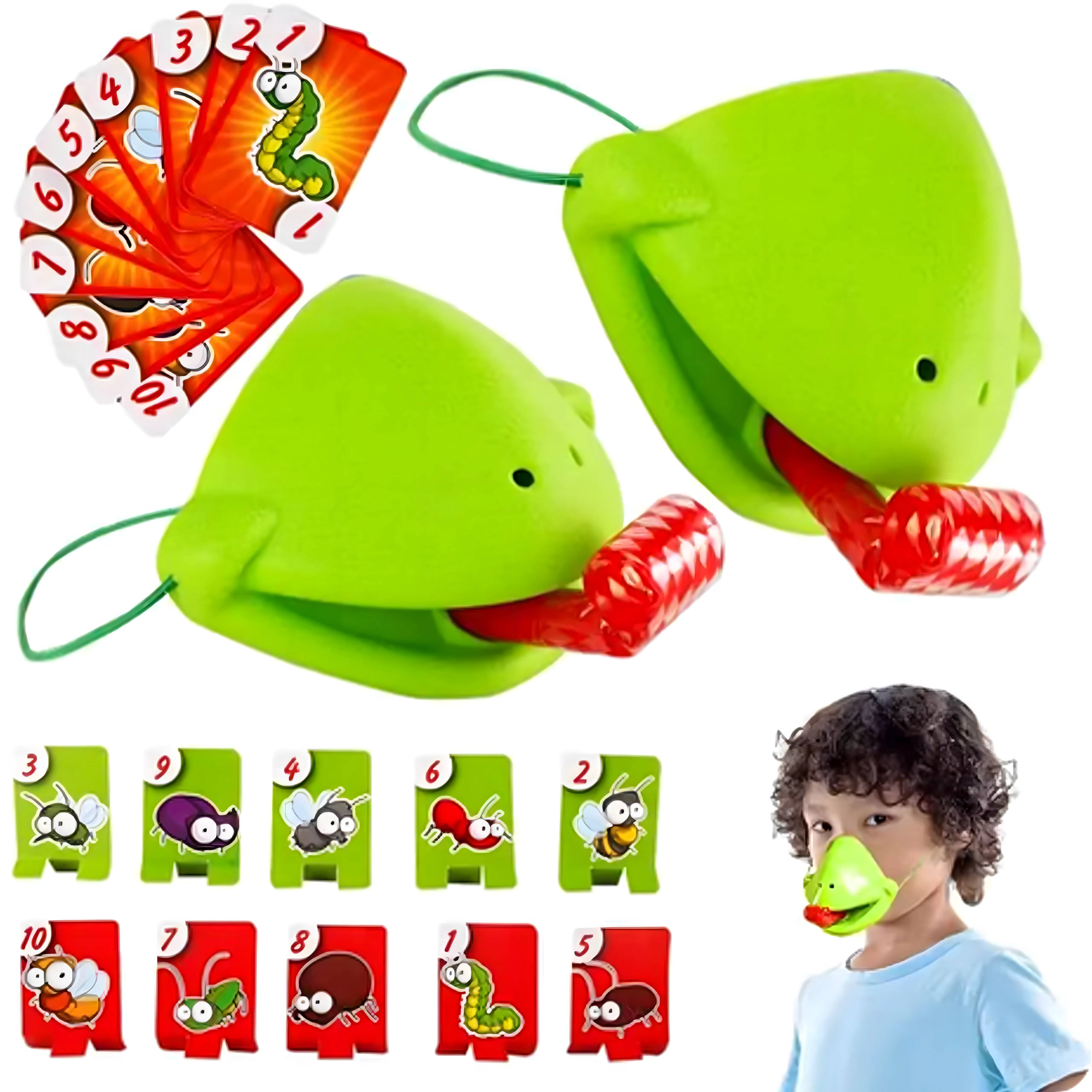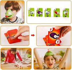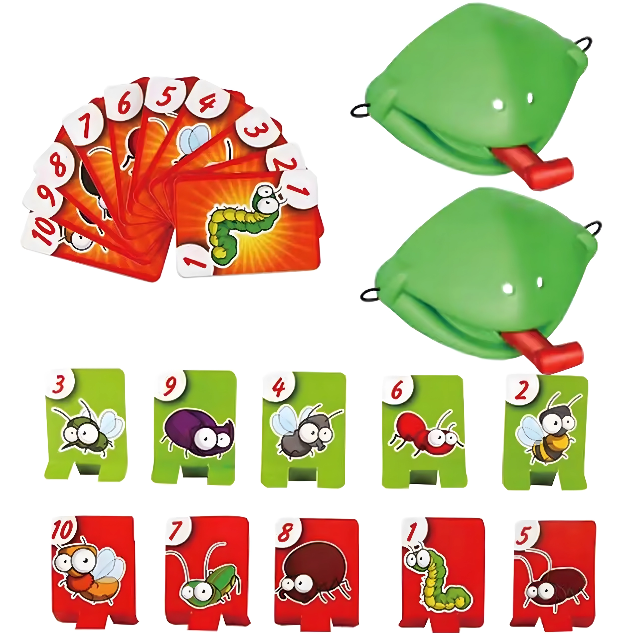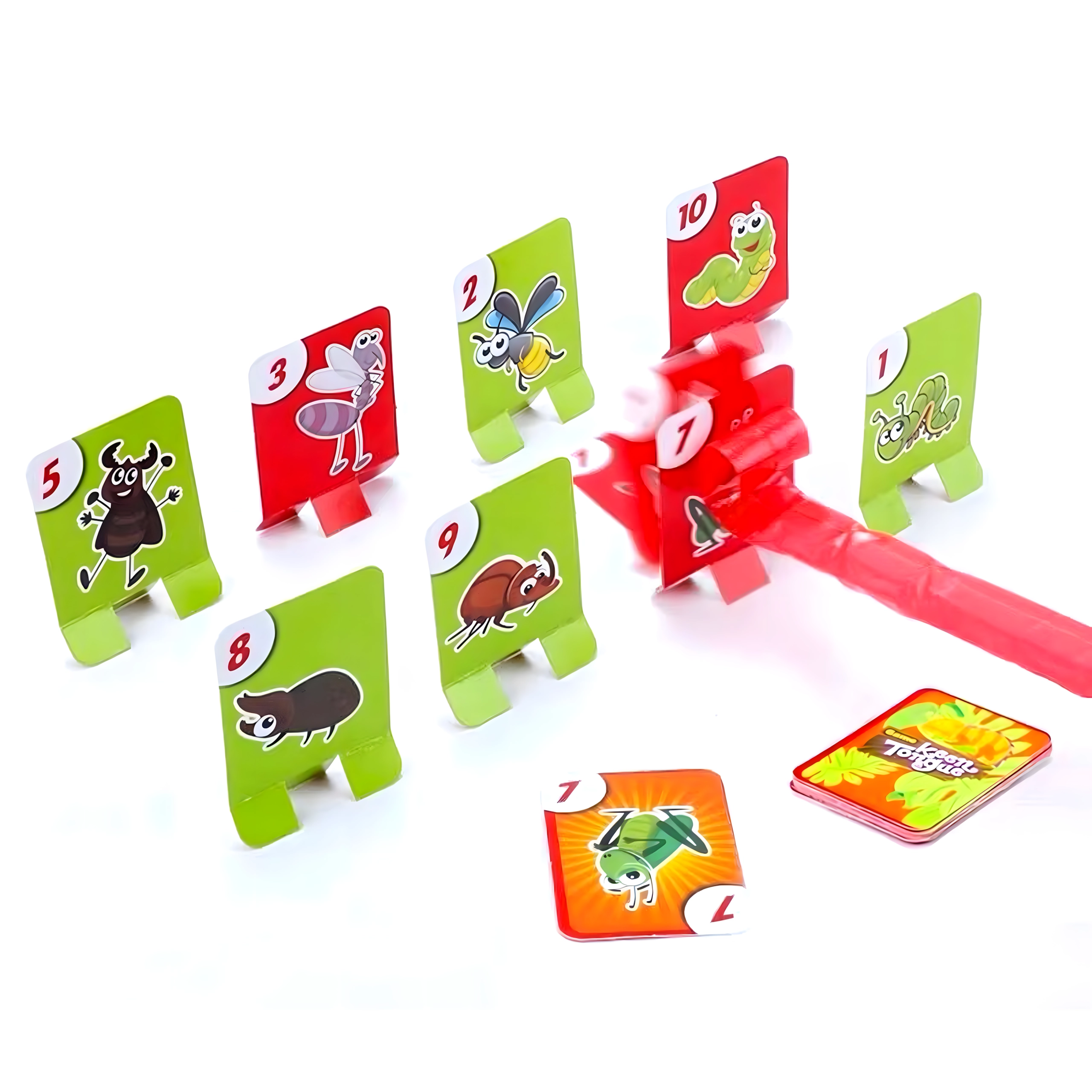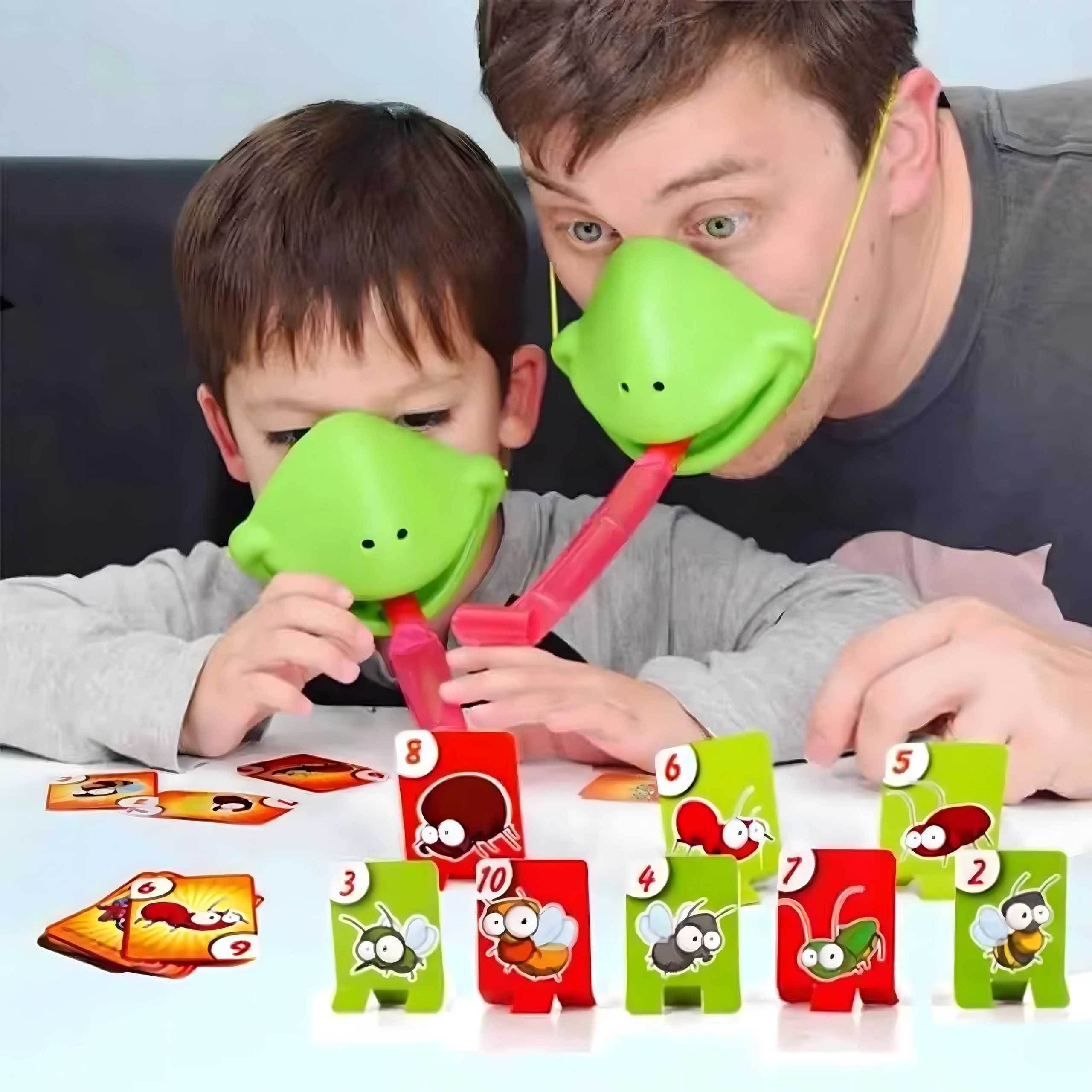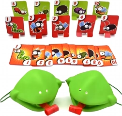 Válj békává, és indulj bogárvadászatra! Felveszed a maszkot, célzol, és a nyelvvel a célkártyákra lősz – aki a megfelelő képet vagy számot a leggyorsabban elkapja, pontot szerez. A játék könnyen érthető, pillanatok alatt előkészíthető, és kicsiket-nagyokat egyaránt lelkesít.