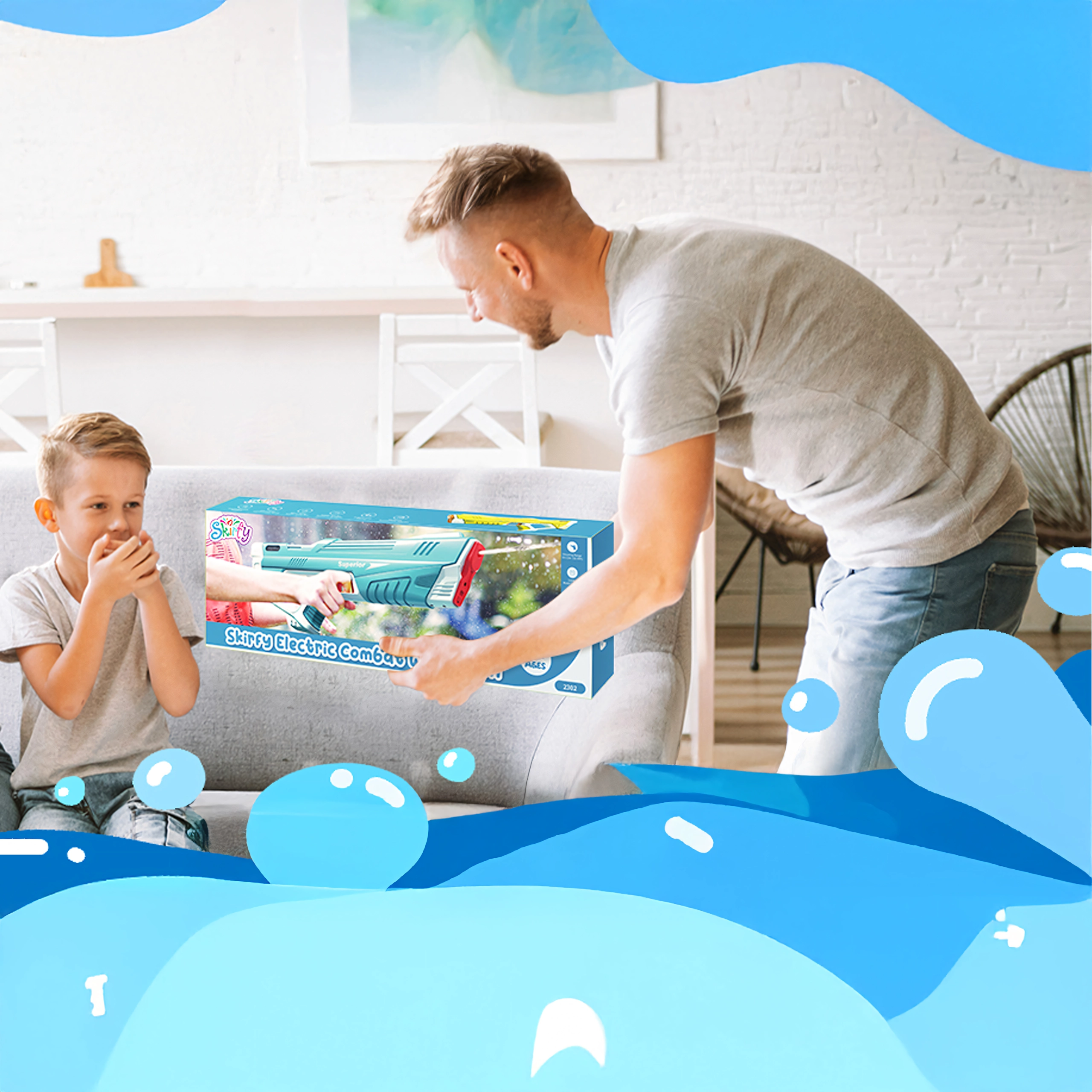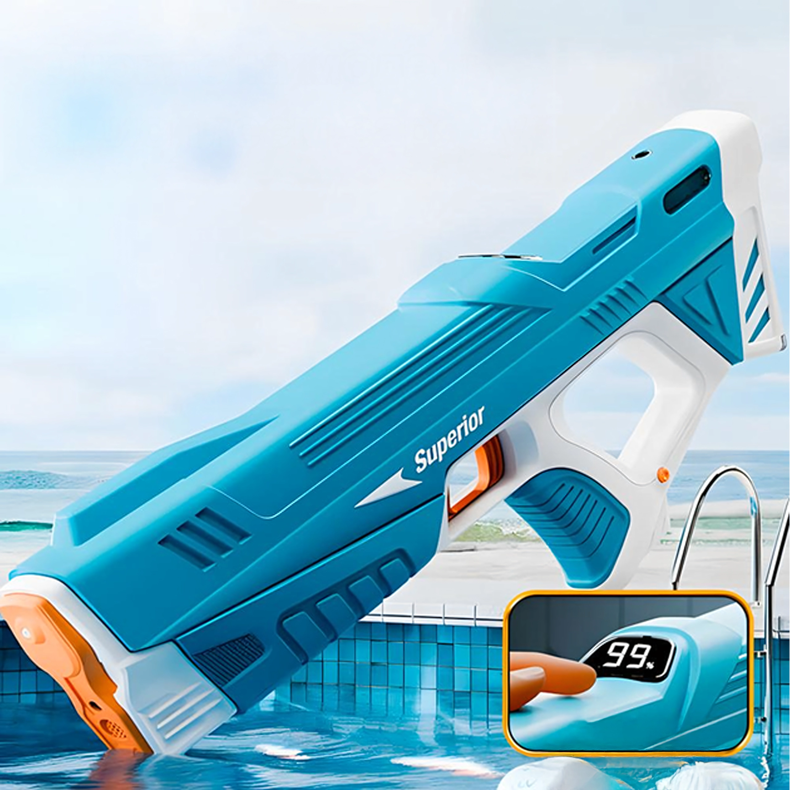 Az elektromos vízipisztoly kényelmet nyújt pumpálás nélkül, és hosszú üzemidőt biztosít az USB-s töltésnek köszönhetően. Ergonomikus markolat, tartós műanyag kivitel és dinamikus vízsugár gondoskodik az akciódús csatákról a medencénél és a strandon is.