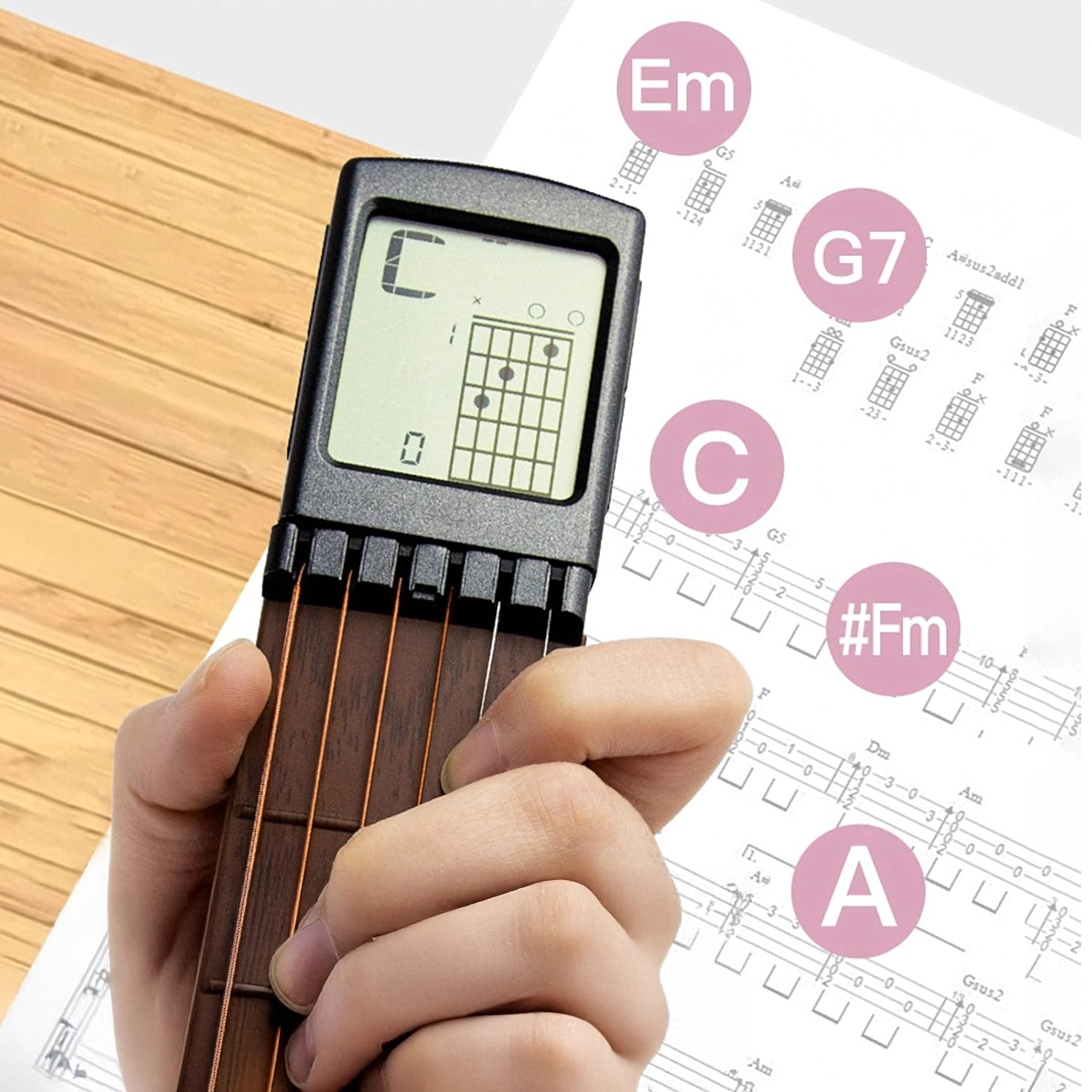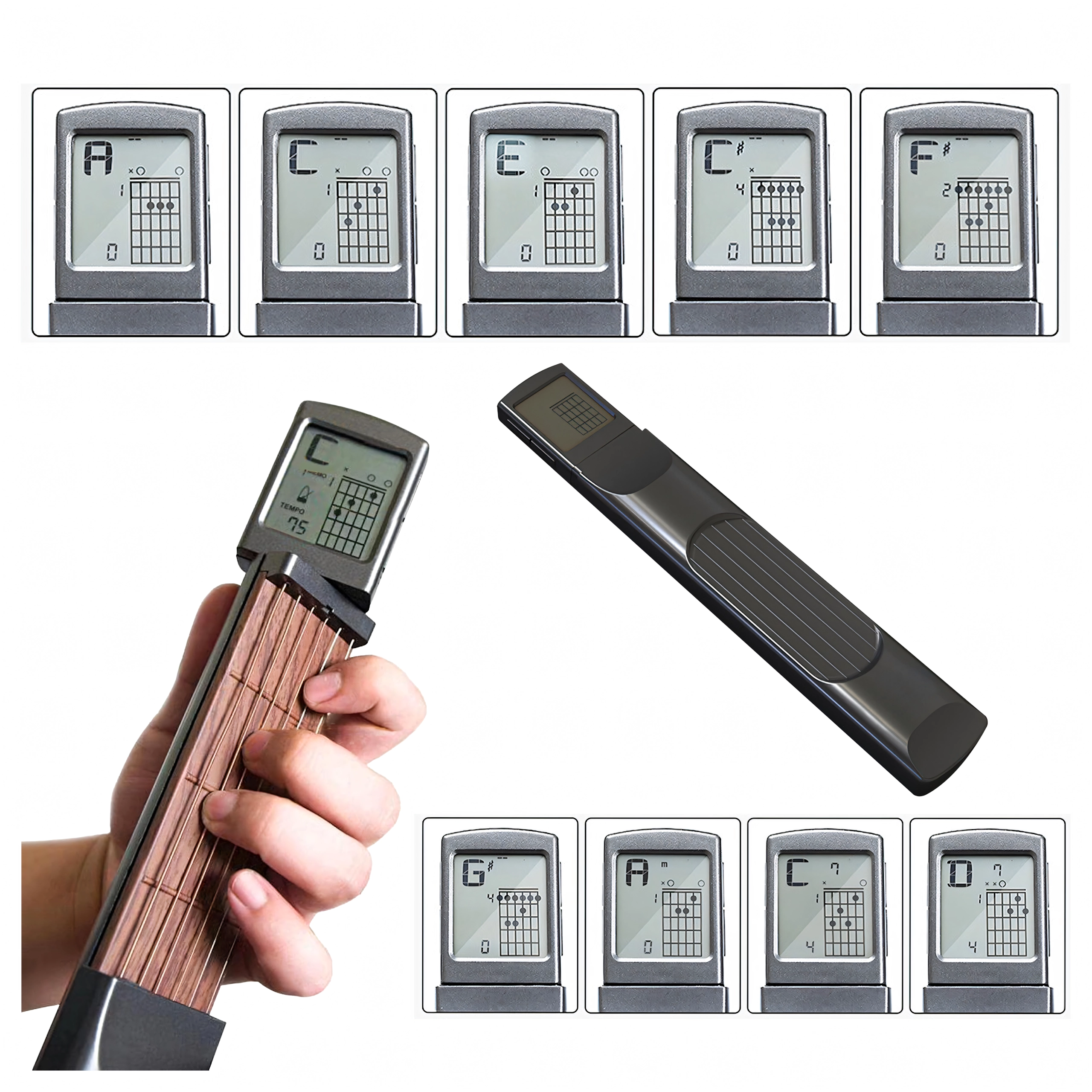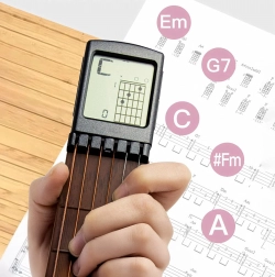 Gyakorold az akkordokat, az ujjrendeket és az akkordváltásokat anélkül, hogy zavarnád a környezeted. A hordozható gyakorló fogólap rövid menzúrával az acélhúroknak köszönhetően valós játékérzetet ad, míg az LCD kijelző akkorddiagramokat, metronómtempót és hasznos jelzéseket mutat a gyors tanulásért.