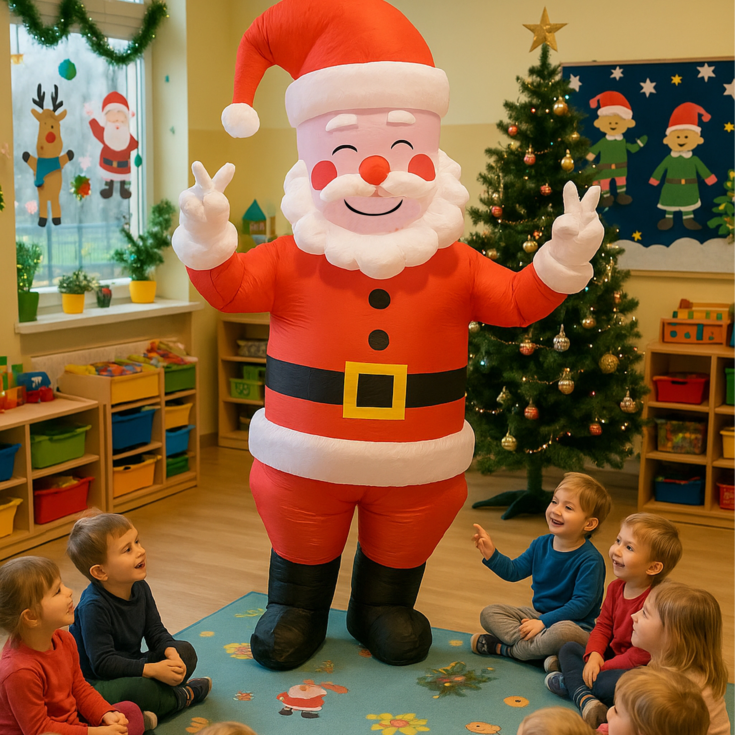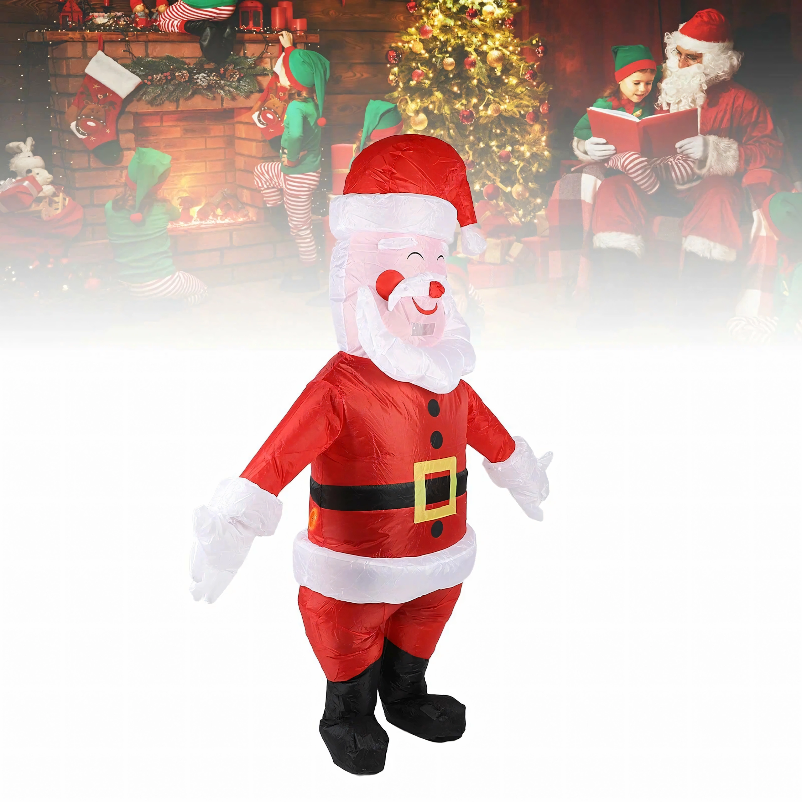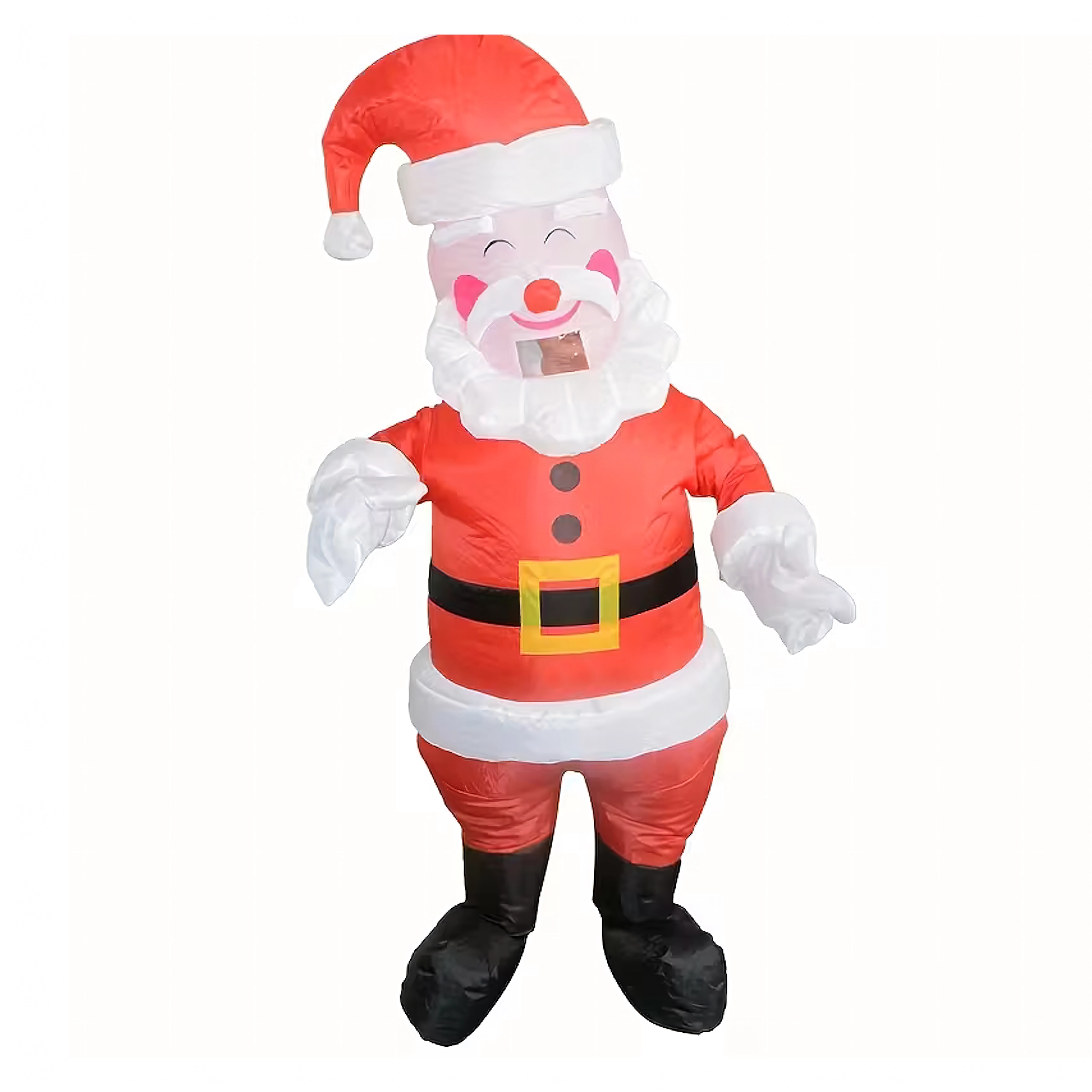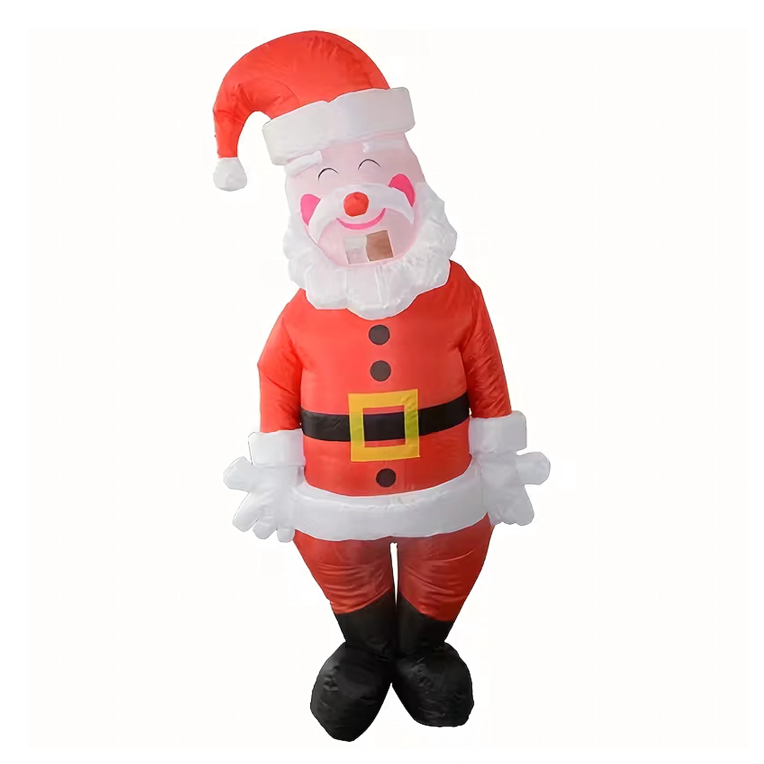 Vedd fel a Mikulás szerepét percek alatt! Ez a felfújható jelmez egyszerű felvételre, kényelmes viselésre és látványos megjelenésre készült. A beépített fúvó/turbina gyorsan felfújja a jelmezt, és végig tartja a formáját. Az univerzális méret a legtöbb felnőttnek megfelel (kb. 150–190 cm).